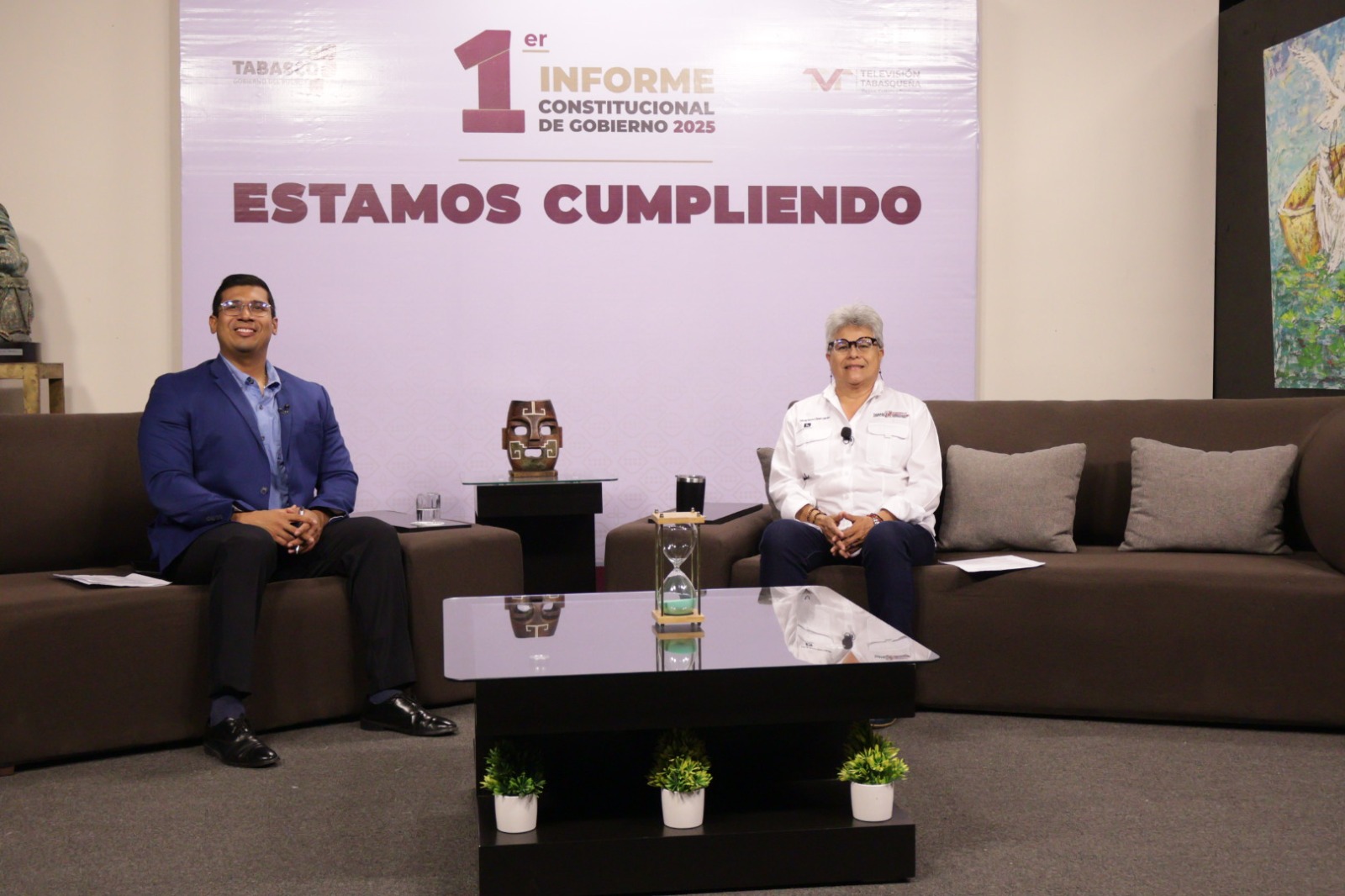 En el programa especial ‘Estamos Cumpliendo’ realizado por Televisión Tabasqueña (TVT), en el marco del primer Informe de Gobierno, la servidora pública amplió los avances y logros del gobierno que encabeza Javier May Rodríguez, y que desde octubre de 2024 puso en marcha programas productivos que inyectaron recursos al campo y devolvieron la esperanza a productoras y productores tabasqueños.