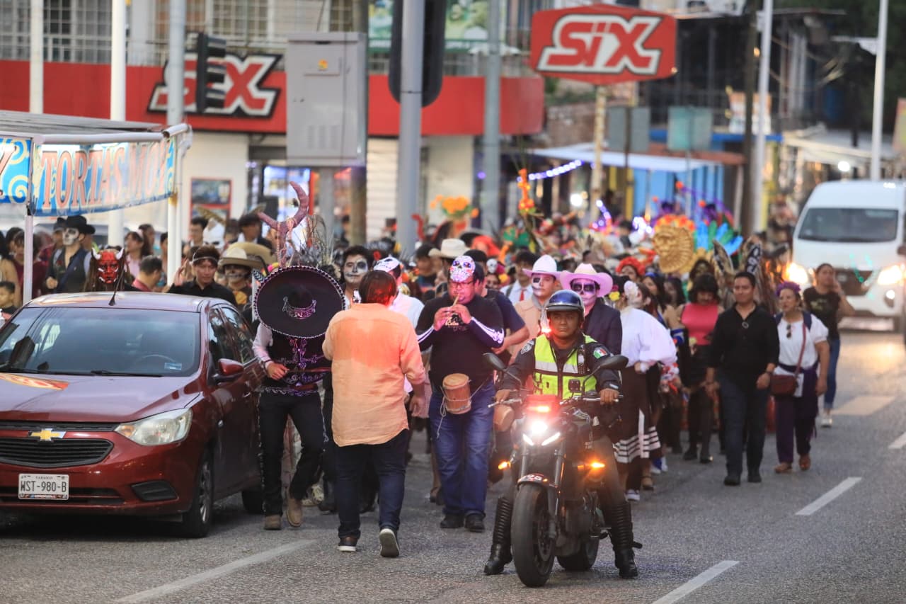 “El año pasado se realizó la comparsa, pero estábamos todavía agarrando las riendas de la Secretaría de Cultura. Ahora, ya integrados cada uno en las distintas áreas, se da esta sinergia entre nuestras escuelas y centros culturales, que permite que hagan escala en la cuarta edición del FECCI y, de aquí, al Centro Cultural Quinta Grijalva, que es un macro esplendoroso, alumbrado en esta festividad con velas y flores. Es un gran esfuerzo de muchos actores para seguir impulsando estas tradiciones tan mexicanas”, detalló la servidora pública.