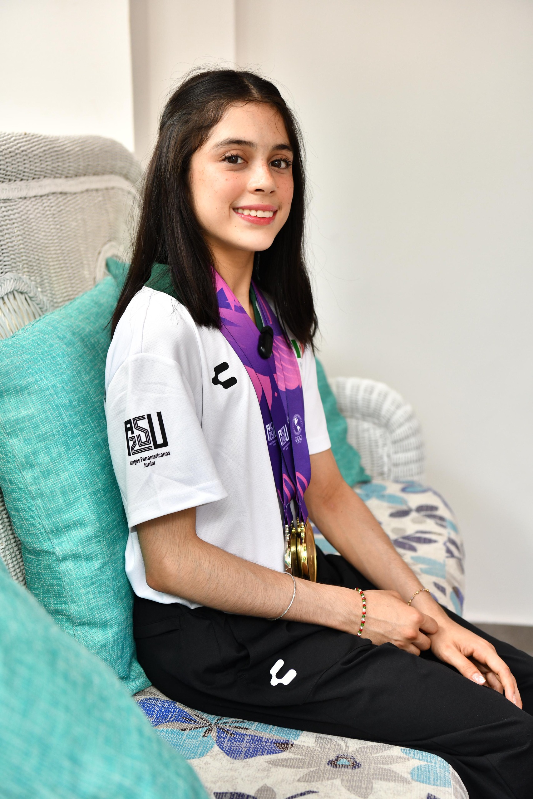 Acompañada siempre por sus papás, relata que a los cuatro años la natación fue el primer deporte practicado por ambas, por seguridad y para asistir a albercadas; sin embargo, la emoción, felicidad y desafío que implica la gimnasia llamaron su atención, llevándola a incursionar en cinco competencias internacionales y recientemente en los Juegos Panamericanos celebrados en Paraguay, adjudicándose 2 oros y 1 plata.