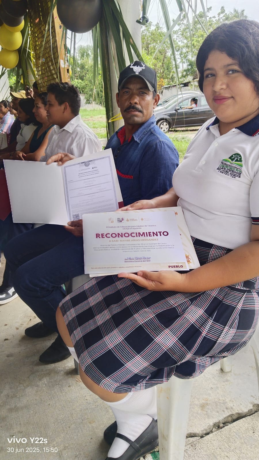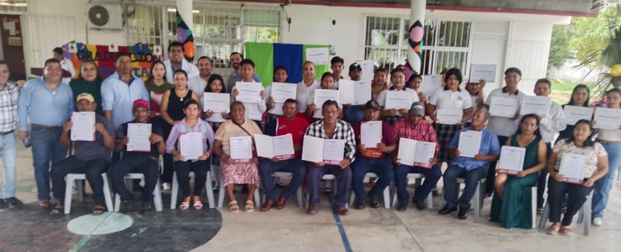 Comprometidos con el progreso de las localidades donde viven, alumnos de nivel medio superior realizan su servicio social como asesores educativos en el Instituto de Educación para Adultos de Tabasco (IEAT), lo cual da frutos, como es el caso de la entrega de 19 certificados de educación básica a jóvenes y adultos del ejido Cocoyol del municipio de Centro, quienes fueron beneficiados con asesorías de parte de alumnos del Telebachillerato Comunitario número 40.