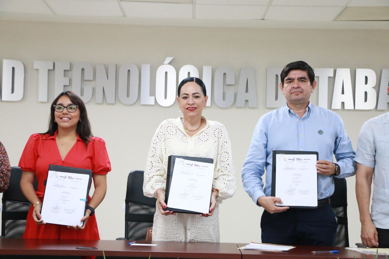 El acto fue encabezado por la secretaria de Educación, Patricia Iparrea Sánchez; la secretaria de Medio Ambiente y Desarrollo Sostenible, Sheila Guadalupe Cadena Nieto; y el rector de la UTTAB, Lenin Martínez Pérez, quienes coincidieron en que este convenio permitirá establecer bases sólidas de cooperación para atender los retos en materia de medio ambiente, cambio climático y desarrollo energético sostenible.