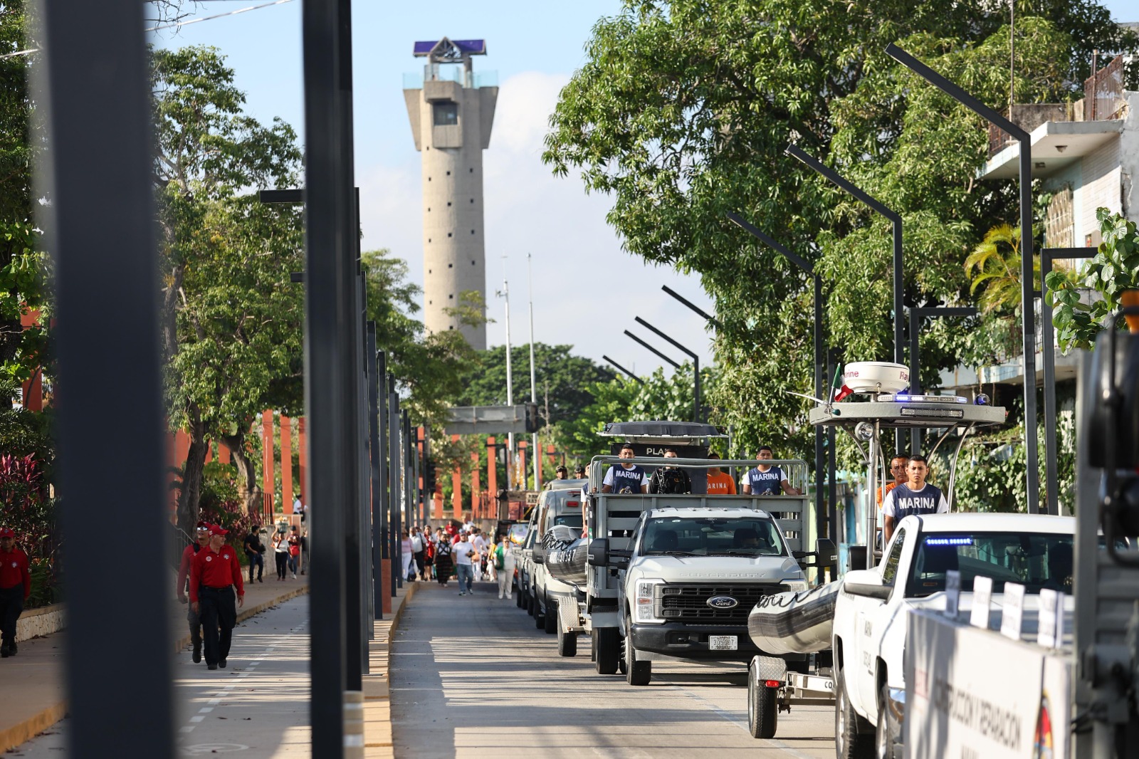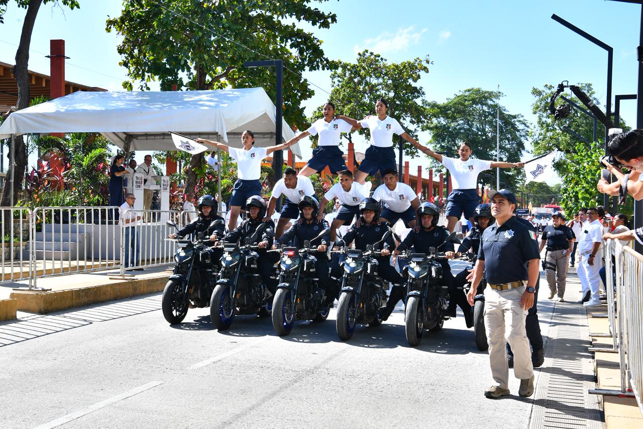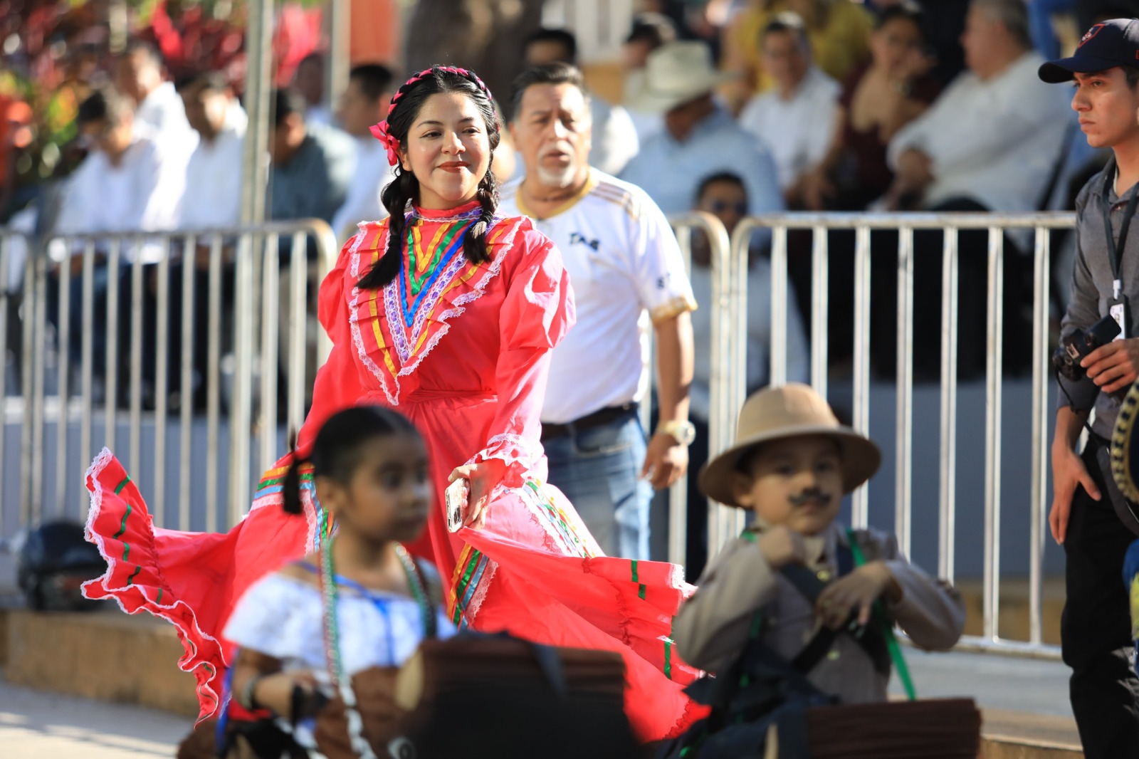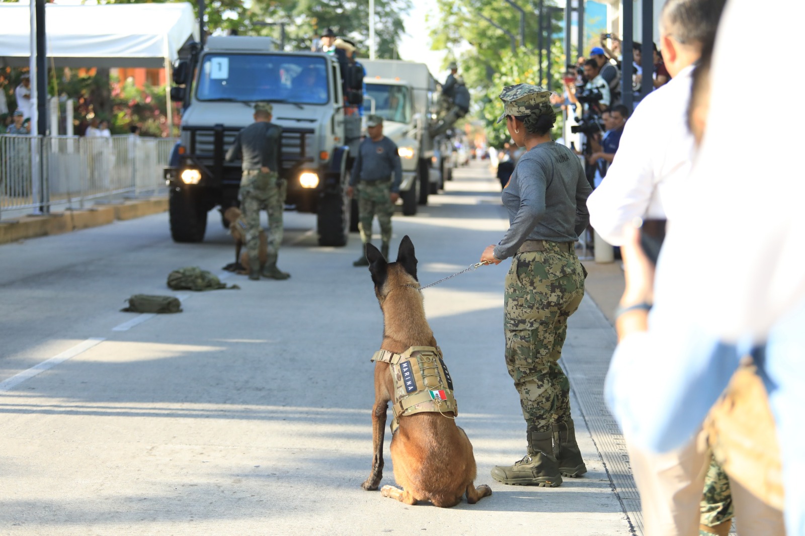 El desfile fue encabezado por elementos de la Defensa, del 37º Batallón de Infantería, de la Guardia Nacional y de la Quinta Región Naval de la Secretaría de Marina, quienes, con orgullo y gallardía, mostraron parte del equipo con que cuentan y presentaron algunas de las acciones que realizan en apoyo a la población.