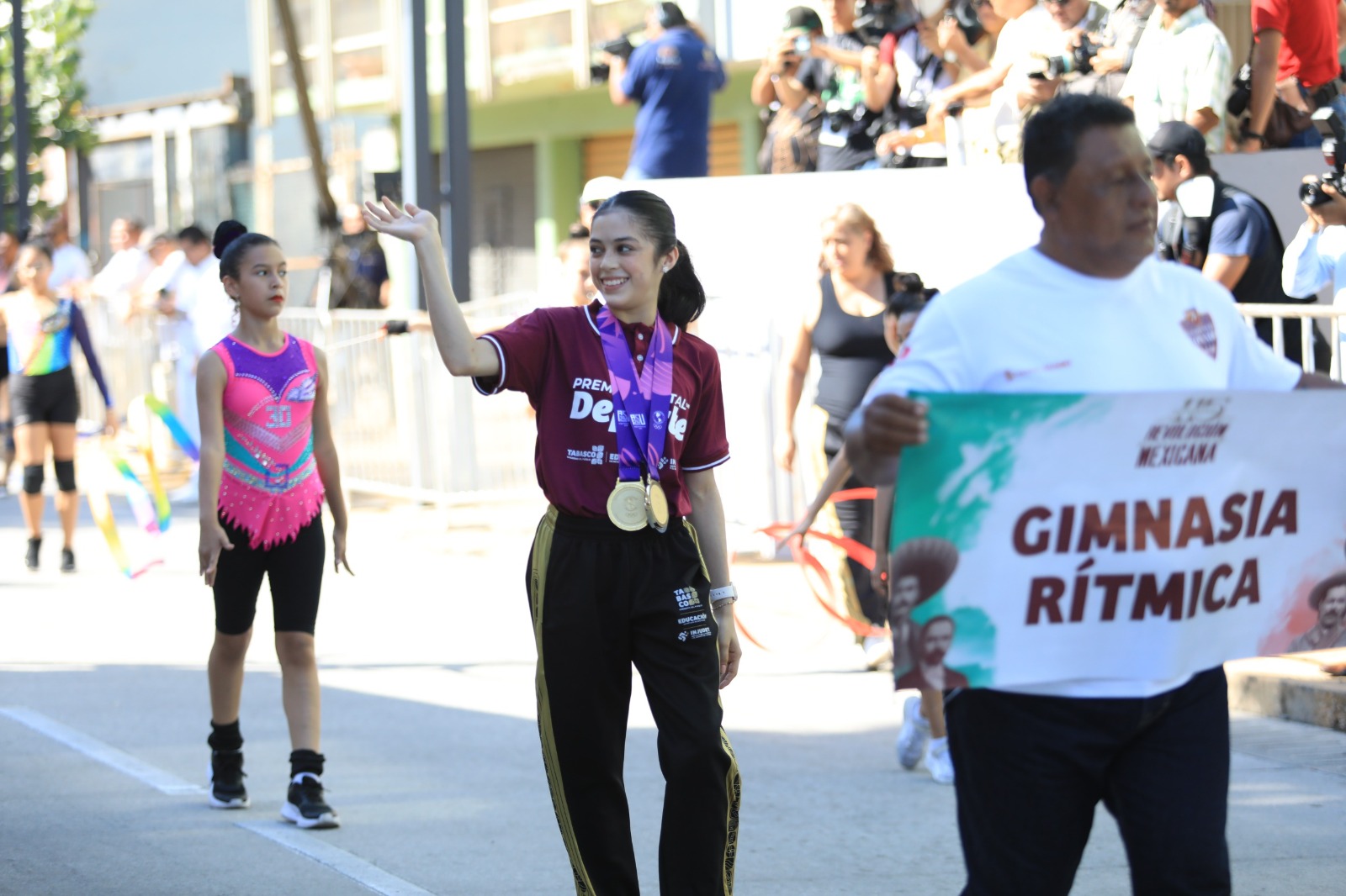 Contingentes de las distintas asociaciones y clubes deportivos de ajedrez, beisbol, beisbol 5, boxeo, esgrima, futbol americano, futbol, gimnasia rítmica, judo, karate, levantamiento de pesas, luchas asociadas, patines sobre ruedas, tae kwon do y deportes adaptados, participaron también en el desfile cívico, deportivo y militar