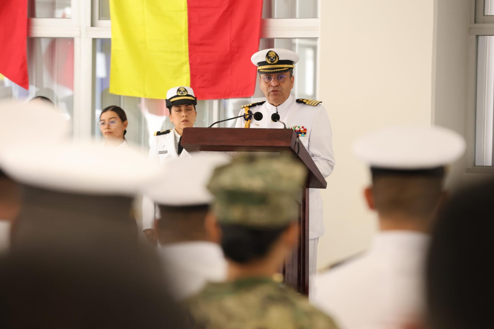 A nombre del almirante Raymundo Pedro Morales Ángeles, secretario de Marina y alto mando de la Armada de México, el vicealmirante Héctor Rodríguez reprodujo el mensaje oficial, resaltando que a lo largo de más de dos siglos la Armada de México se ha destacado por ser una institución que es sinónimo de valentía, lealtad y compromiso a la patria.