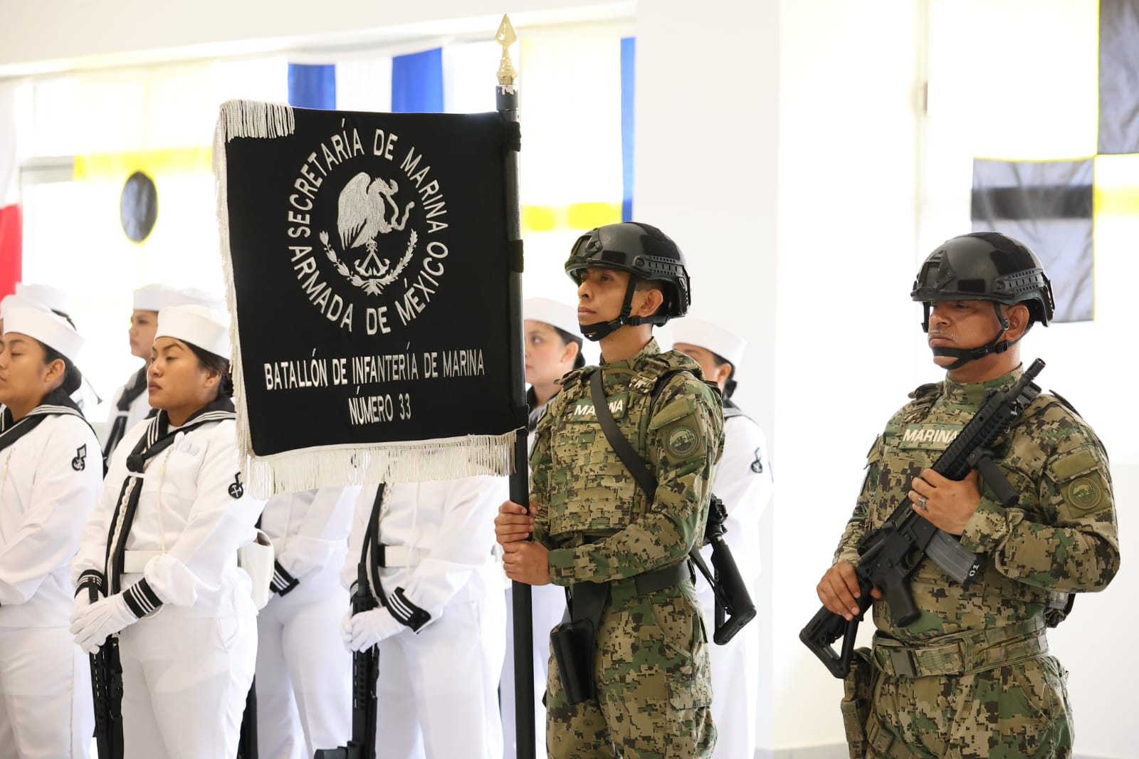 El jefe de Estado Mayor de la Tercera Región Naval mencionó que hoy, los aniversarios de la creación de la Armada de México y la promulgación en 1824 de la primera Carta Magna del México independiente, representan una fecha llena de símbolos y de memoria histórica para la vida nacional, porque nos enseña “que no hay nación posible sin soberanía y que no hay futuro posible sin libertad. Reconocer la historia es recordar de dónde venimos para mantener firme el rumbo hacia adelante”, enfatizó.