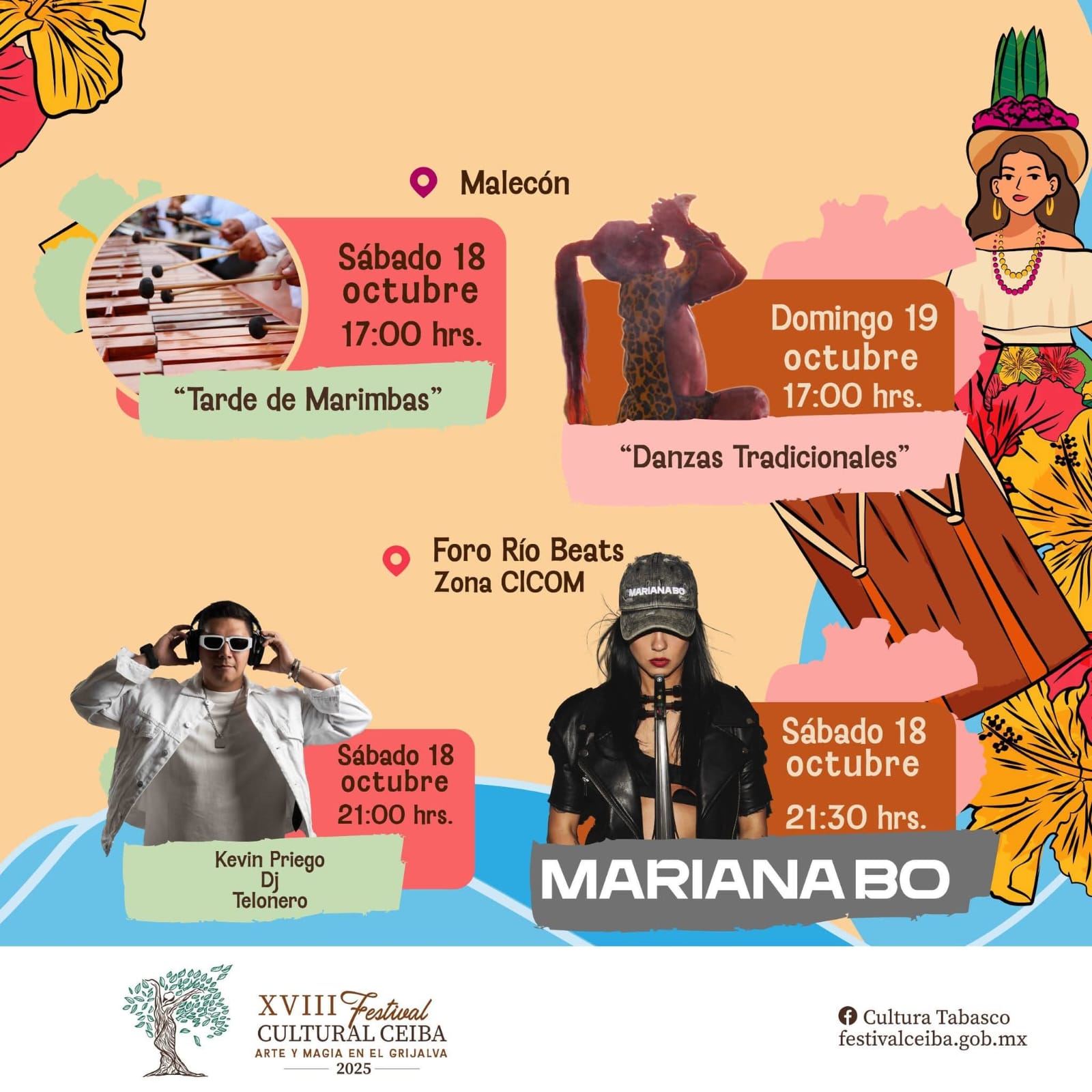 Con una amplia cartelera que invita a disfrutar del arte, tradiciones y cultura tabasqueña, el Gobierno del Pueblo a través de la Secretaría de Cultura, está listo para celebrar del 17 al 19 de octubre la edición XVIII del Festival Cultural CEIBA, con una serie de actividades completamente gratuitas, hechas para que los chicos, se adentren a nuestras raíces y los más grandes, vuelvan a sentir la magia e historia del Barrio Mágico y río Grijalva.
