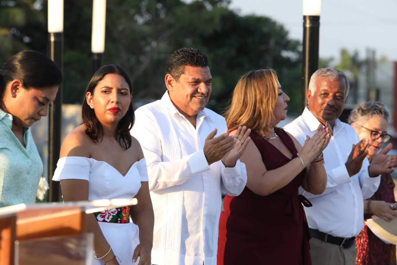 En compañía de la alcaldesa, la secretaria de Cultura, Aída Elba Castillo Santiago y cientos de familias reunidas en el parque central, May Rodríguez destacó que ese municipio también ha sido cuna de grandes hazañas, como la Batalla del Jahuactal, donde Gregorio Méndez Magaña encabezó la heroica defensa contra la intervención francesa, defendiendo la a dignidad y la soberanía de nuestro país.