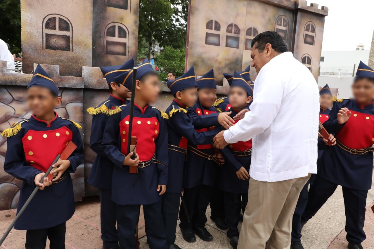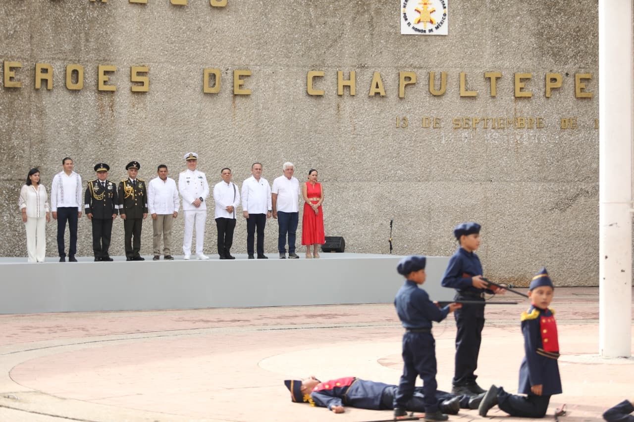 Durante la ceremonia, los alumnos de la escuela primaria ‘Elpidio López Escobar’ hicieron una representación de la batalla del 13 de septiembre de 1847; en tanto que, el estudiante del plantel 28 del Colegio de Bachilleres de Tabasco (Cobatab) y ganador del Concurso de Declamación de este año de ese subsistema, Tristan Arturo Contreras Rodríguez, ejecutó con elocuencia las fanfarrias a los héroes.