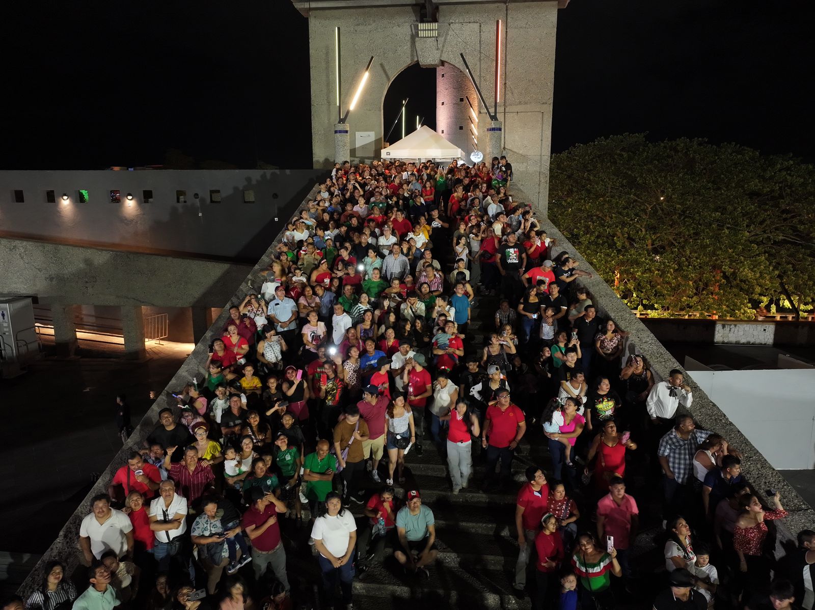 El ambiente fue de una auténtica fiesta popular y familiar, aún antes de que el reloj del centenario edificio, sede del Poder Ejecutivo, marcara las cinco de la tarde. Los motivos patrios iluminaban no sólo el bello Palacio de Gobierno, sino también la del Tribunal Superior de Justicia y del Congreso del Estado. Las banderas tricolor bailaron alegres con el viento festejando con las y los mexicanos.