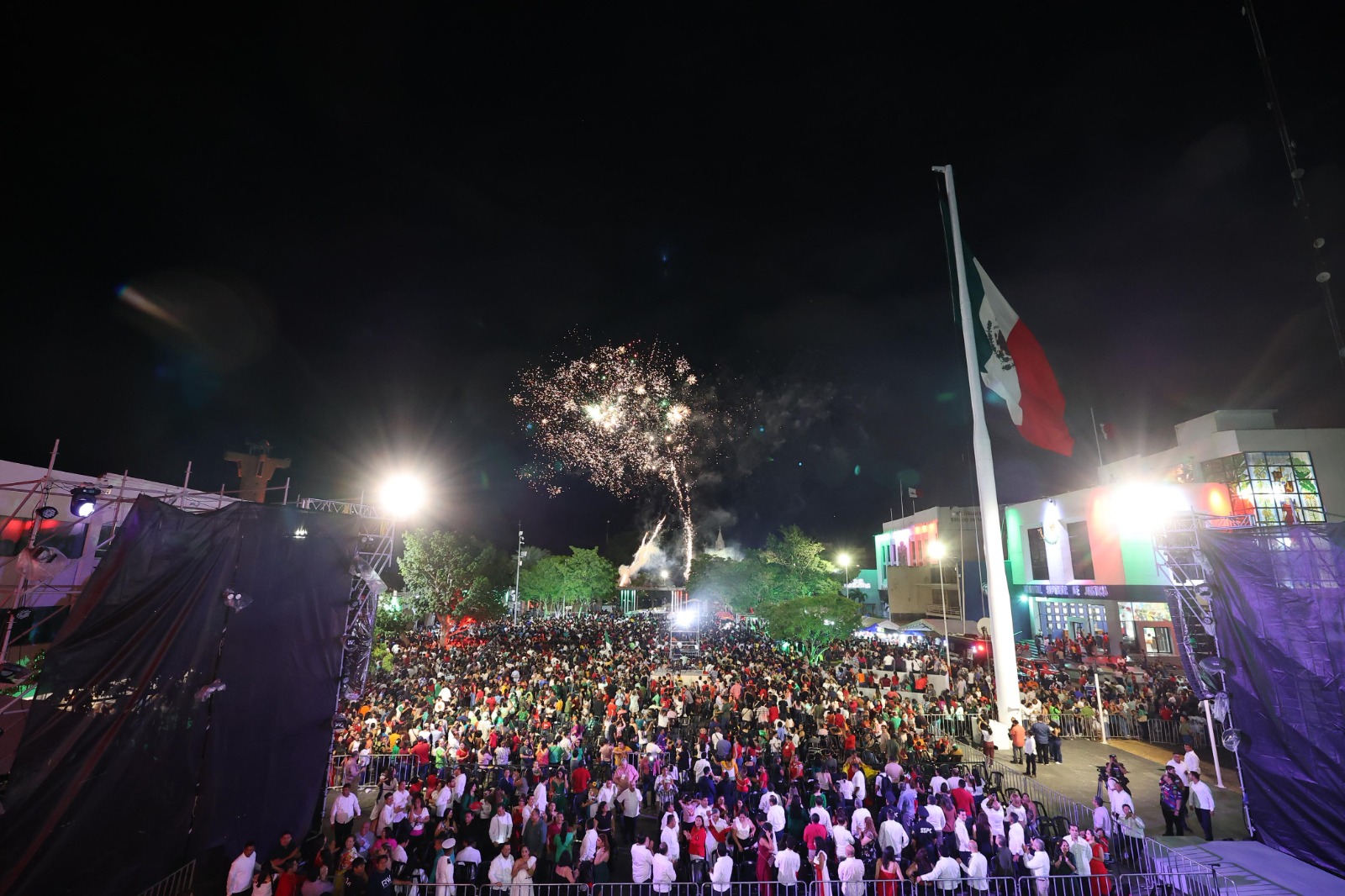 “En los vivas a Leona Vicario y doña Josefa Ortiz está claro que ya desde antes había mujeres decididas. Y este grito tuvo vivas dedicados a nosotras. La verdad, las mujeres hemos sido valientes. Y ahora queda claro porque el grito lo dio una mujer, la Presidenta Claudia Sheinbaum. Es el año de las mujeres. También el gobernador Javier May nos ha dado mucha relevancia. Agradecemos que nos abran la puerta. Antes trabajábamos solas y ahorita venimos todas en grupo, y eso nos ha ayudado para visibilizarnos”, expresó la cocinera Eli Osorio mientras el Mariachi Juvenil Azteca, el Ballet Folclórico del CEIBA y la Orquesta Sinfónica del Gobierno del Estado ponían el repertorio para alegría de los asistentes.