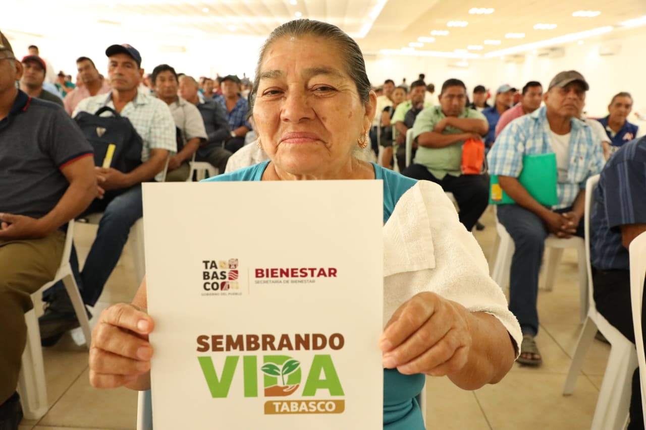 El Gobernador Javier May Rodríguez encabezó la entrega, en el municipio de Centla, de 299 tarjetas del programa estatal ‘Sembrando Vida’ y 78 de ‘Bienestar y Plenitud’ para hombres de 63 y 64 años, reafirmando así su compromiso de atender a los que más lo necesitan.