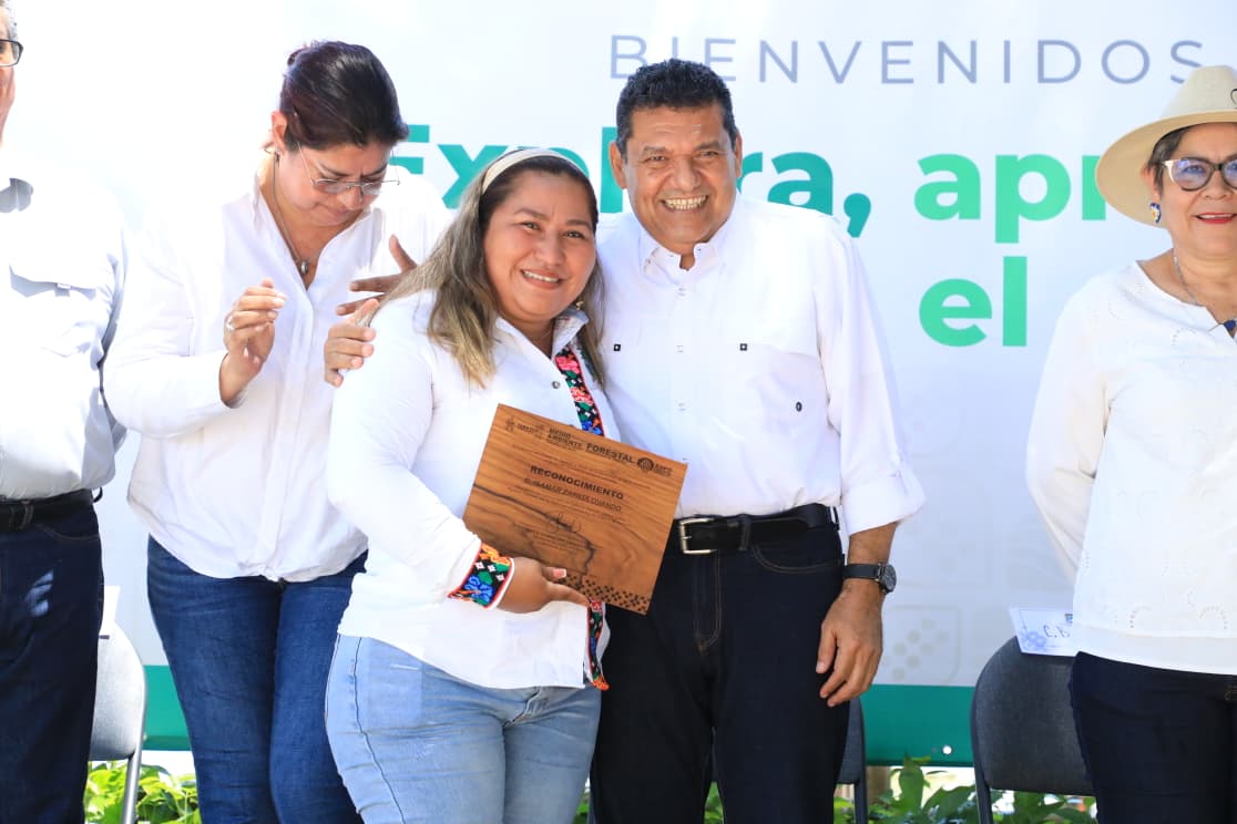 “Este encuentro refleja el compromiso colectivo de quienes cuidan y aprovechan de manera sostenible nuestros recursos forestales, con una visión de futuro y lo más importante, siempre con el respeto al medio ambiente”, destacó el mandatario al reconocer a las mujeres y hombres que han aprovechado el desarrollo de plantaciones para generar empleo, siempre respetando el cuidado de la naturaleza.