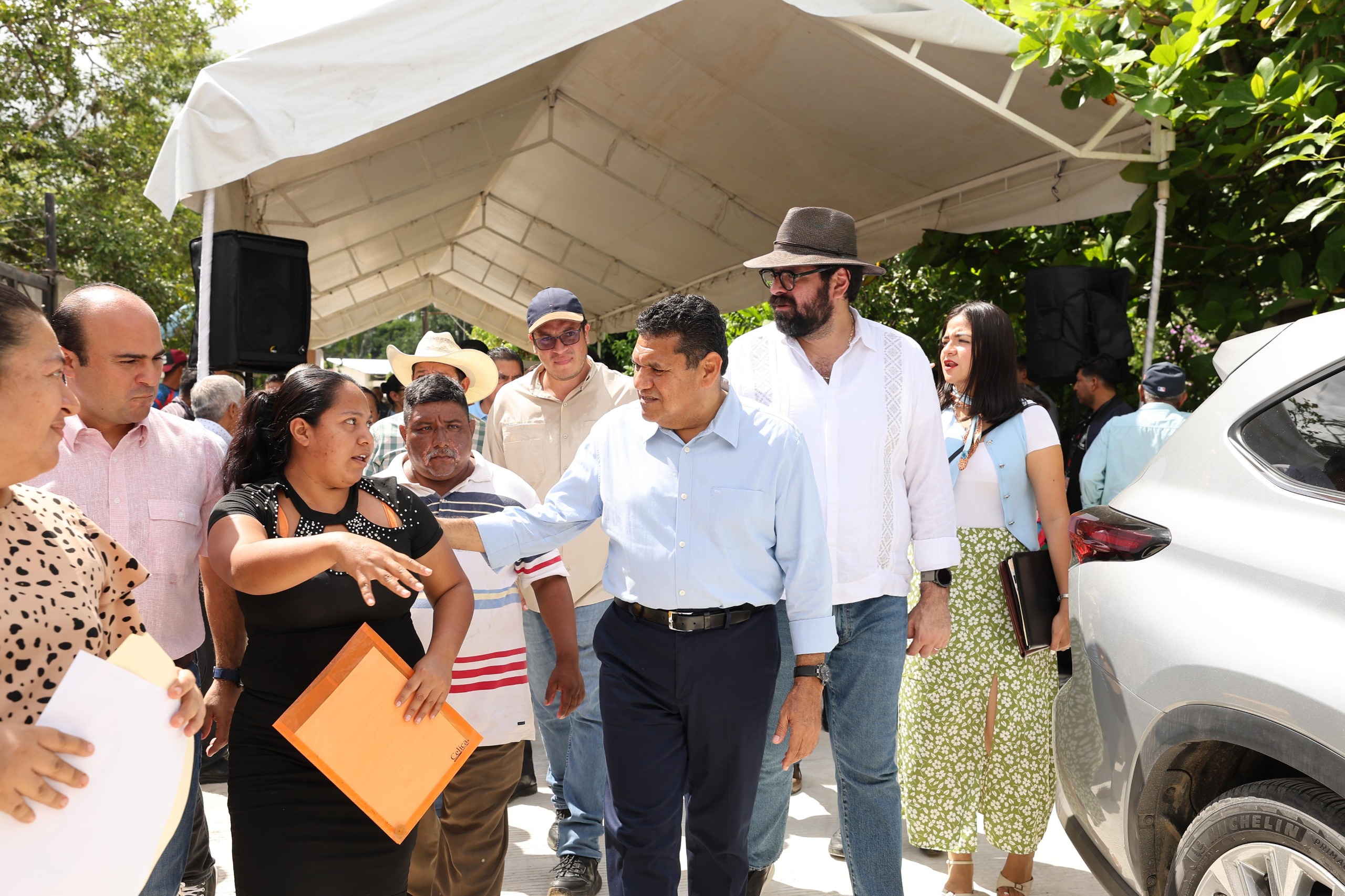 Previamente, en el ejido Benito Juárez y Colorado, el jefe del Ejecutivo y el alcalde dieron el banderazo a la construcción de obras del proyecto integral de equipamiento urbano, a través del que se rehabilitará el alumbrado público y la red drenaje sanitario de la localidad, se pavimentarán calles con concreto hidráulico y se construirán guarniciones y banquetas. En las acciones se invertirán recursos municipales por 7 millones 346 mil 188 pesos en beneficio de mil 604 habitantes.