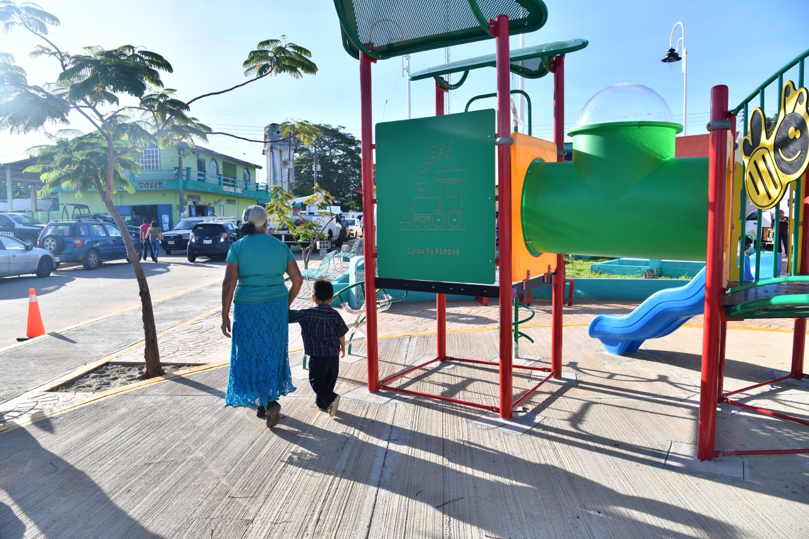 Los trabajos de mejoramiento benefician a una población de más de 1 mil habitantes, e implicaron la reconstrucción de andadores, guarniciones y rampas, además de una cafetería, tres palapas, e instalación de juegos infantiles, mobiliario urbano, y luminarias. En ese lugar, atestiguó la entrega de dos transformadores que contribuirán a reforzar la red de suministro eléctrico.