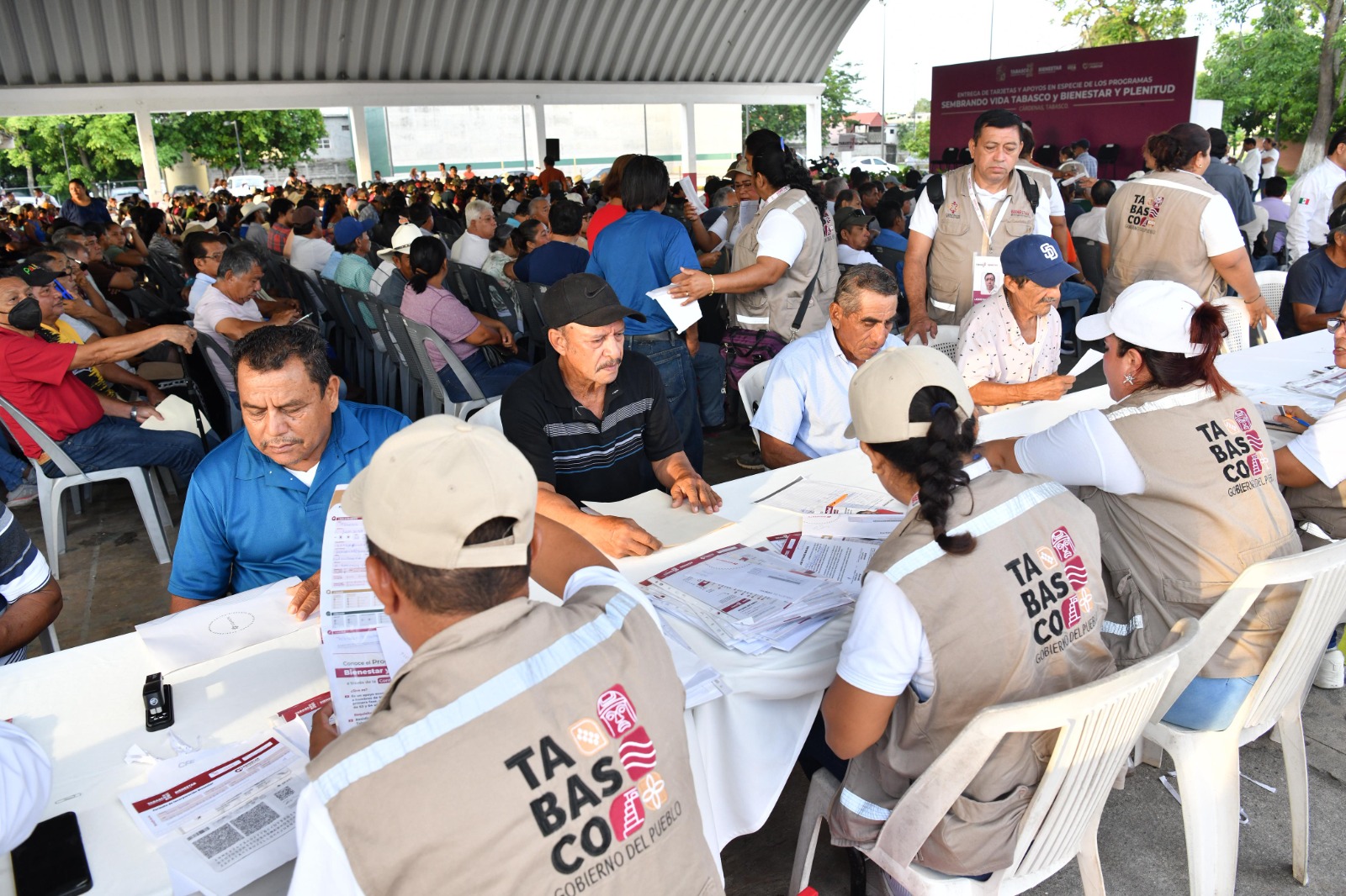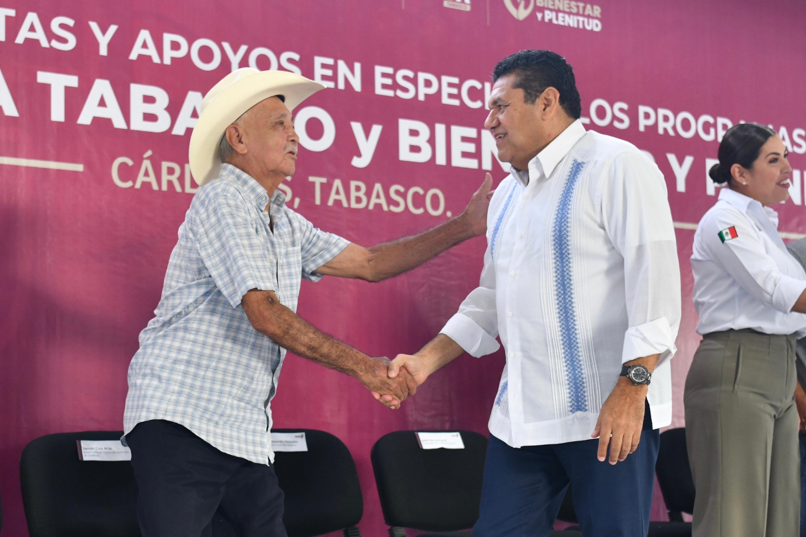 El Gobernador Javier May Rodríguez encabezó la entrega de 2 mil 247 tarjetas a beneficiarios de los programas ‘Sembrando Vida Tabasco’ y ‘Bienestar y Plenitud’ de Cárdenas y Huimanguillo, rubros en los que se realiza una inversión social histórica para cumplir con la tarea de generar empleo permanente, alcanzar la soberanía alimentaria, cuidar el medio ambiente y reconocer el trabajo de los hombres de 63 y 64 años, para colocarlos por encima de la línea del bienestar.