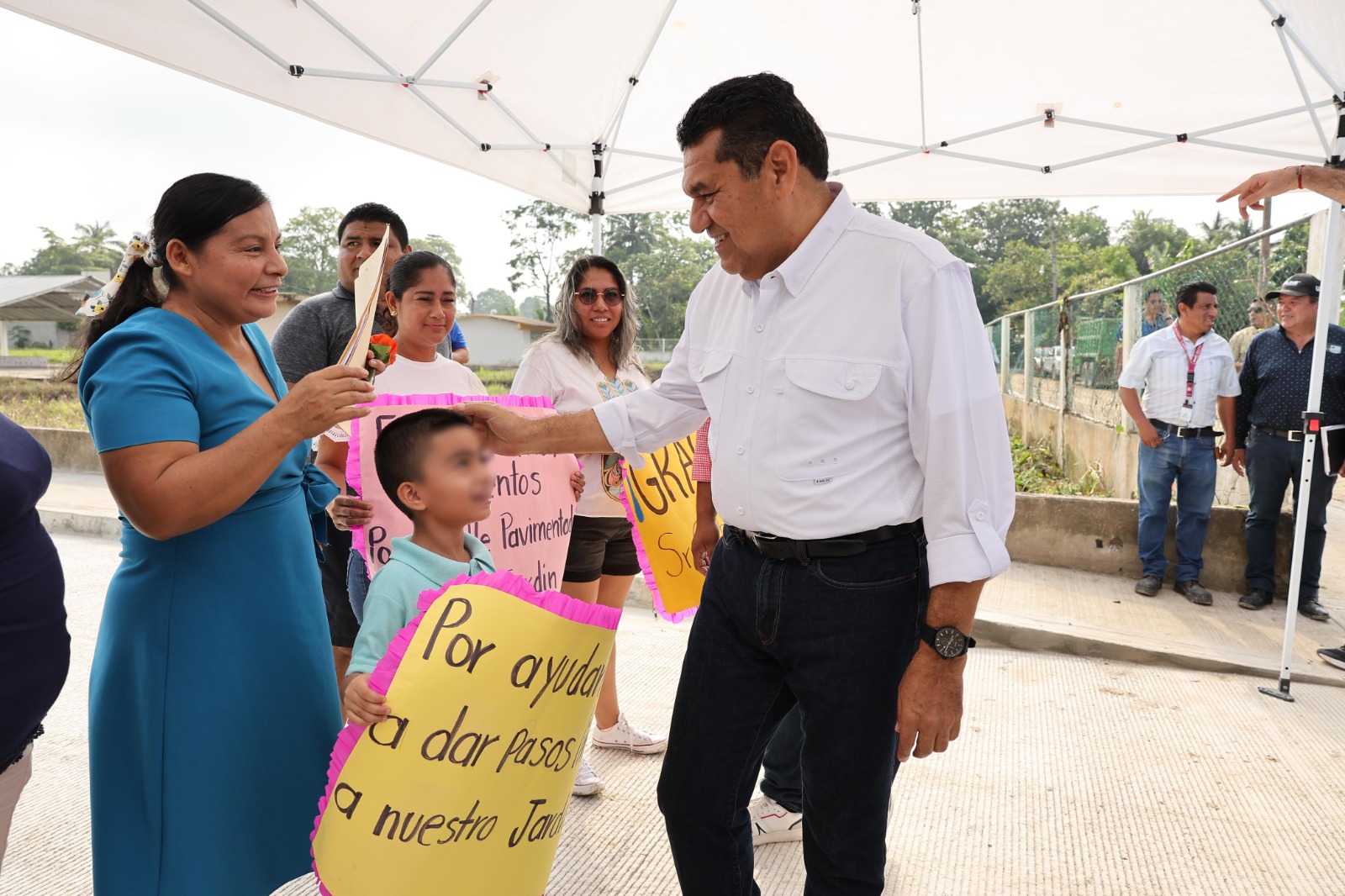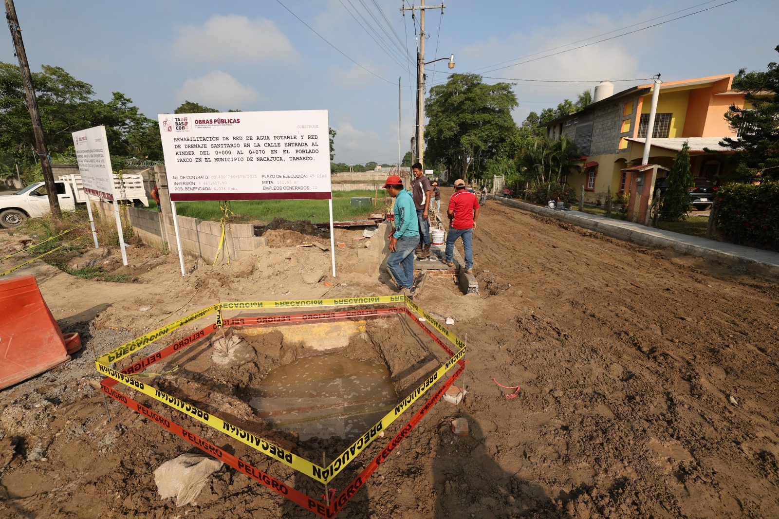 Al supervisar la pavimentación de calles en el poblado Taxco, Nacajuca, en compañía del alcalde, Roberto Ocaña Leyva, constató el avance de los trabajos de construcción con concreto hidráulico, guarniciones, banquetas, red de agua potable y drenaje sanitario en la calle de entrada al kínder «Vicente López Tosca», donde el Gobierno del Pueblo invierte más de 6.8 millones de pesos en beneficio de 2 mil 127 habitantes. Se prevé concluir la obra el próximo 2 de diciembre.