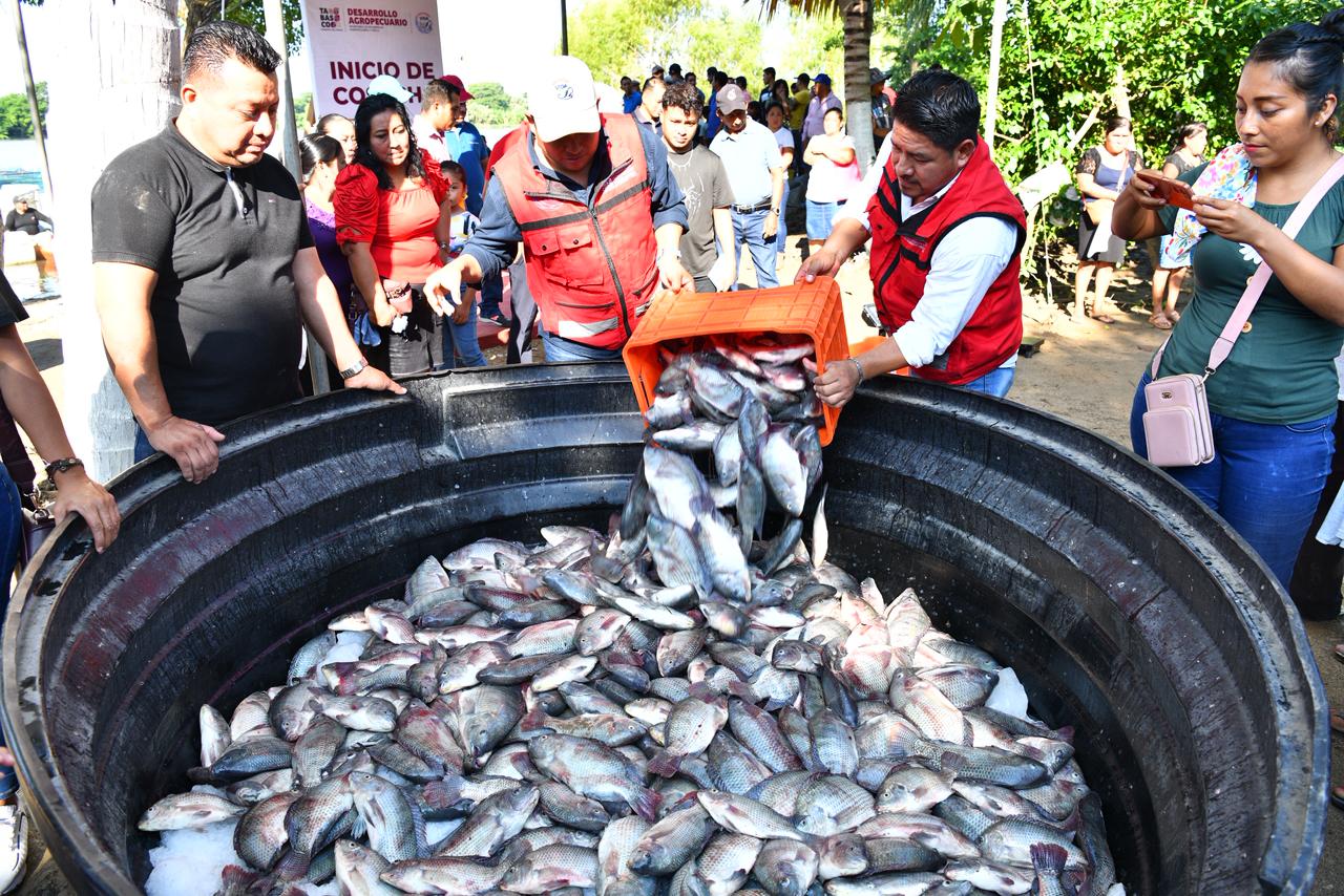 En un hecho histórico, el Gobernador Javier May Rodríguez puso en marcha la comercialización de la primera cosecha de cuatro toneladas de tilapia del Programa Pescando Vida, en cuyo marco subrayó que el Gobierno del Pueblo continuará acompañando a las y los pescadores, convencido de que este es el camino correcto para trabajar de manera conjunta y seguir avanzando para fortalecer la economía familiar y del estado, además de contribuir a la autosuficiencia alimentaria.