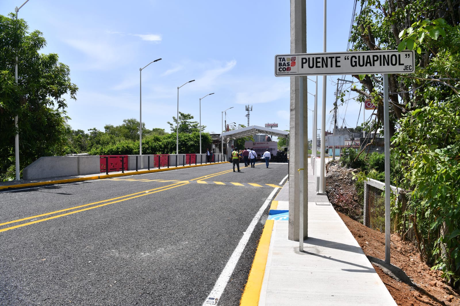 A cuatro décadas de abandono, el Gobierno del Pueblo cumple un compromiso más y hace justicia a las y los habitantes de Macuspana, al hacer la entrega del puente vehicular de concreto Guapinol, en el que se invirtieron 17 millones 412 mil 392 pesos y beneficiará a 66 mil 975 habitantes, al mejorar la conectividad y seguridad vial, además de impulsar el desarrollo económico del municipio.
