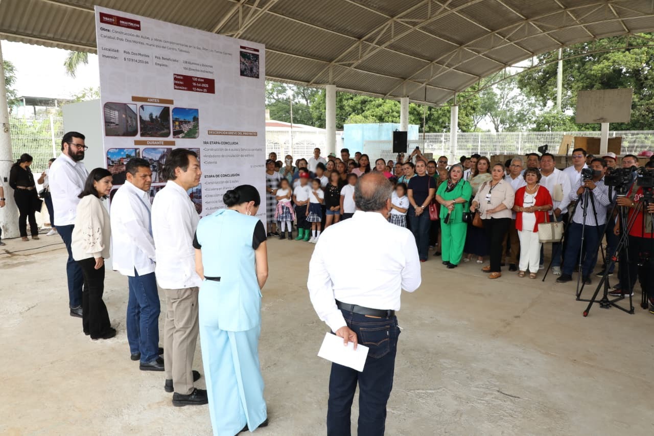 Acompañado por los secretarios de Educación del Estado, Patricia Iparrea Sánchez y de Ordenamiento Territorial y Obras Públicas, Daniel Casasús Ruz, el mandatario tabasqueño destacó que, mediante la suma de esfuerzos entre el gobierno estatal y federal, con el respaldo de la Presidenta Claudia Sheinbaum, se avanza en la modernización y transformación del sistema educativo en Tabasco.
