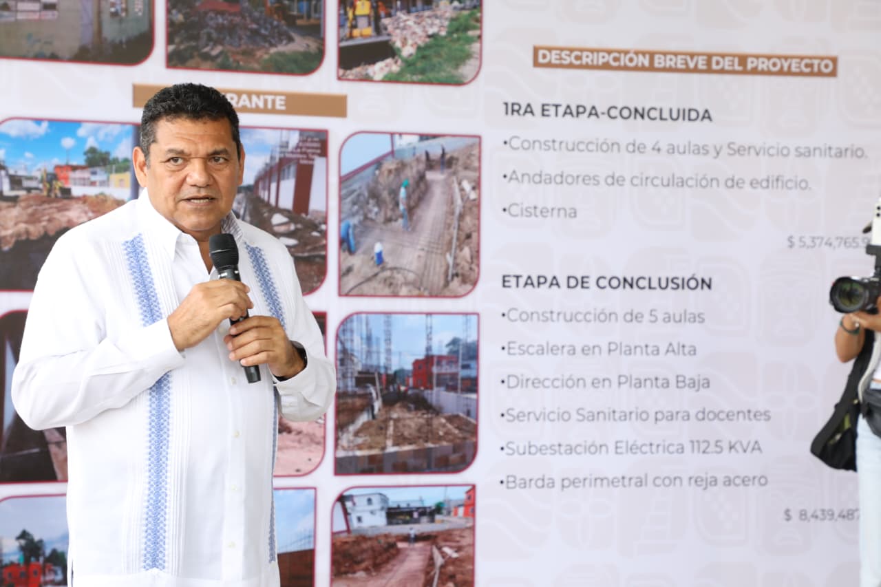Por su parte el titular de SOTOP, Daniel Casasús Ruz, explicó que la primera etapa ya concluida de la escuela ‘Lic. Tomas Garrido Canabal’, cuenta con 4 aulas y servicios sanitarios, además de andadores de circulación de edificios y cisterna, con una inversión de 5 millones 374 mil 765 pesos.