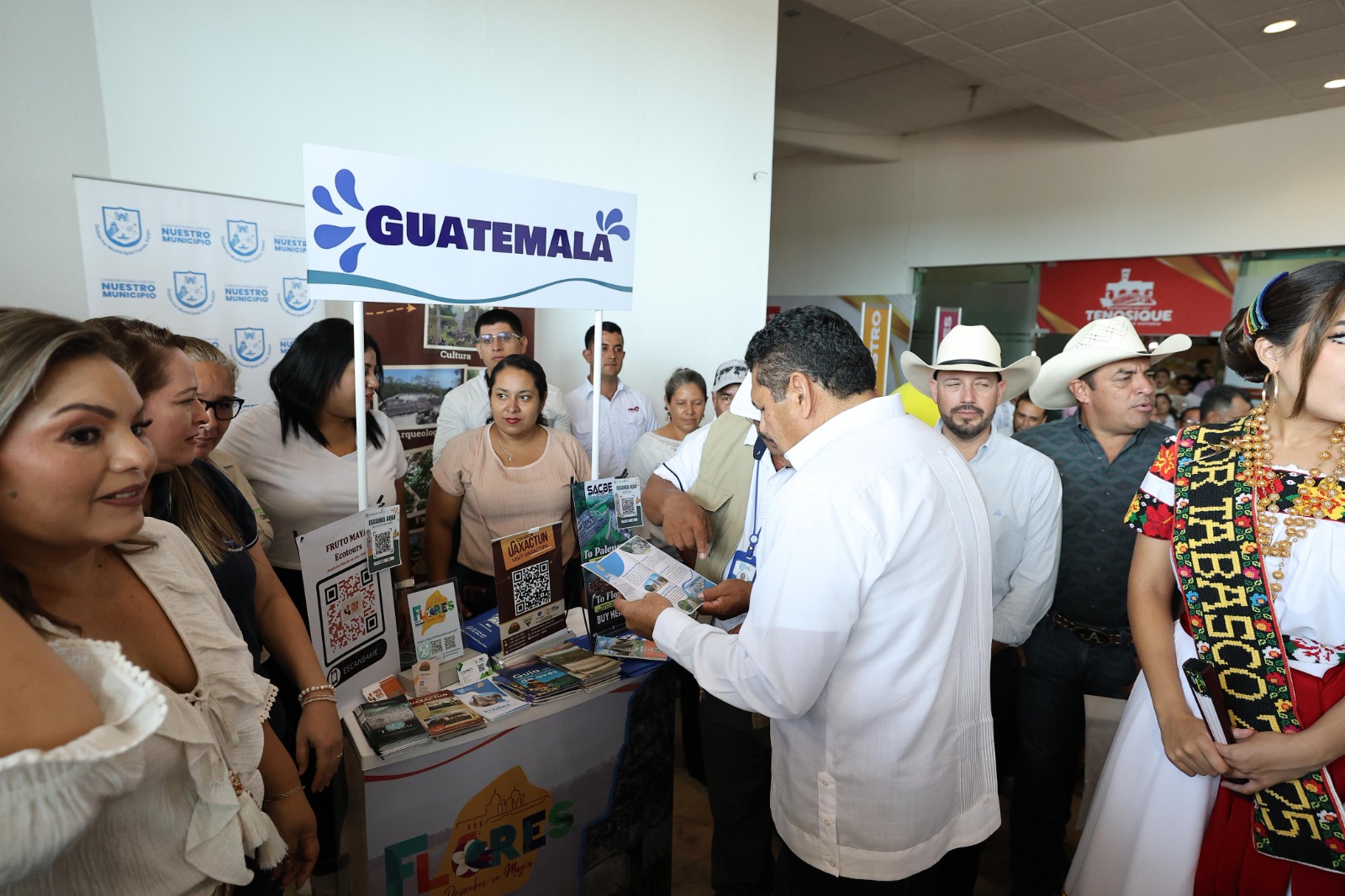 En presencia de Carlos Iván González Osuna, Cónsul de México en Guatemala; y los gobernadores departamentales de Jalapa, Brenda Raymundo Guzmán, y del Petén, Mauricio Acevedo Sandoval, el jefe del Ejecutivo recorrió la exposición instalada en el Centro de Convenciones local, donde durante tres días de actividades —con talleres, catas, conciertos, concursos, experiencias de aventura y recorridos por el majestuoso Cañón del Usumacinta—, se estima recibir a más de 80 mil visitantes y una derrama económica superior a 100 millones de pesos.
