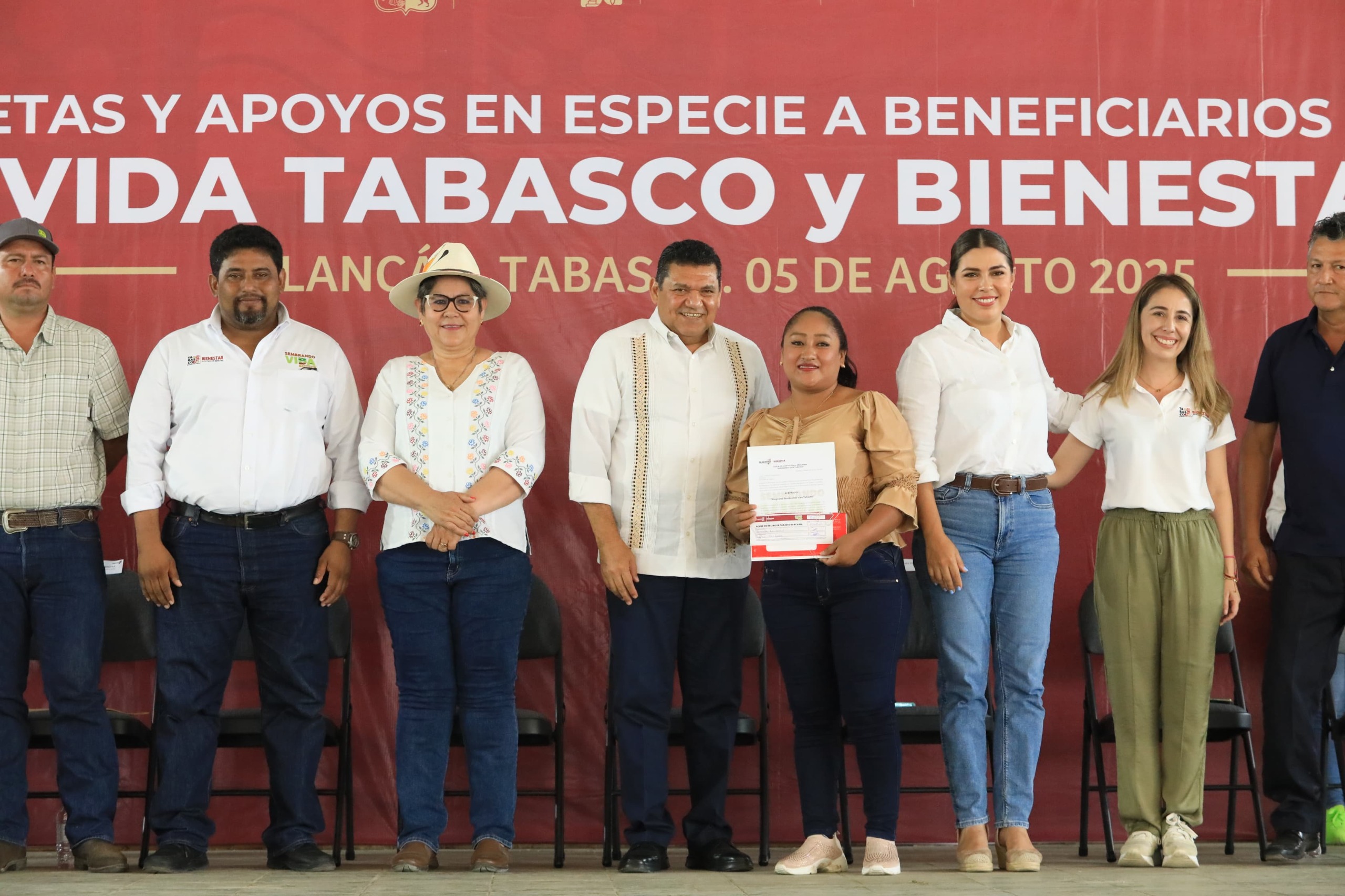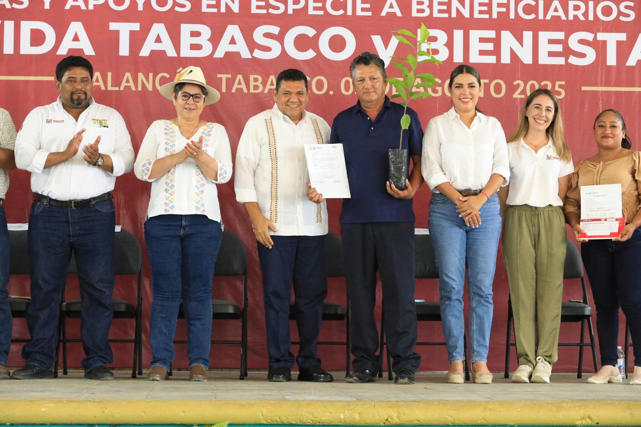 Al encabezar la entrega de 917 tarjetas y apoyos en especie a beneficiarios del programa Sembrando Vida Tabasco de los municipios de Balancán y Tenosique, el Gobernador Javier May Rodríguez reiteró el compromiso de caminar juntos, pueblo y gobierno, para consolidar el segundo piso de la Cuarta Transformación, “hazaña que va a quedar para la historia y el pueblo va a tener memoria”, afirmó.