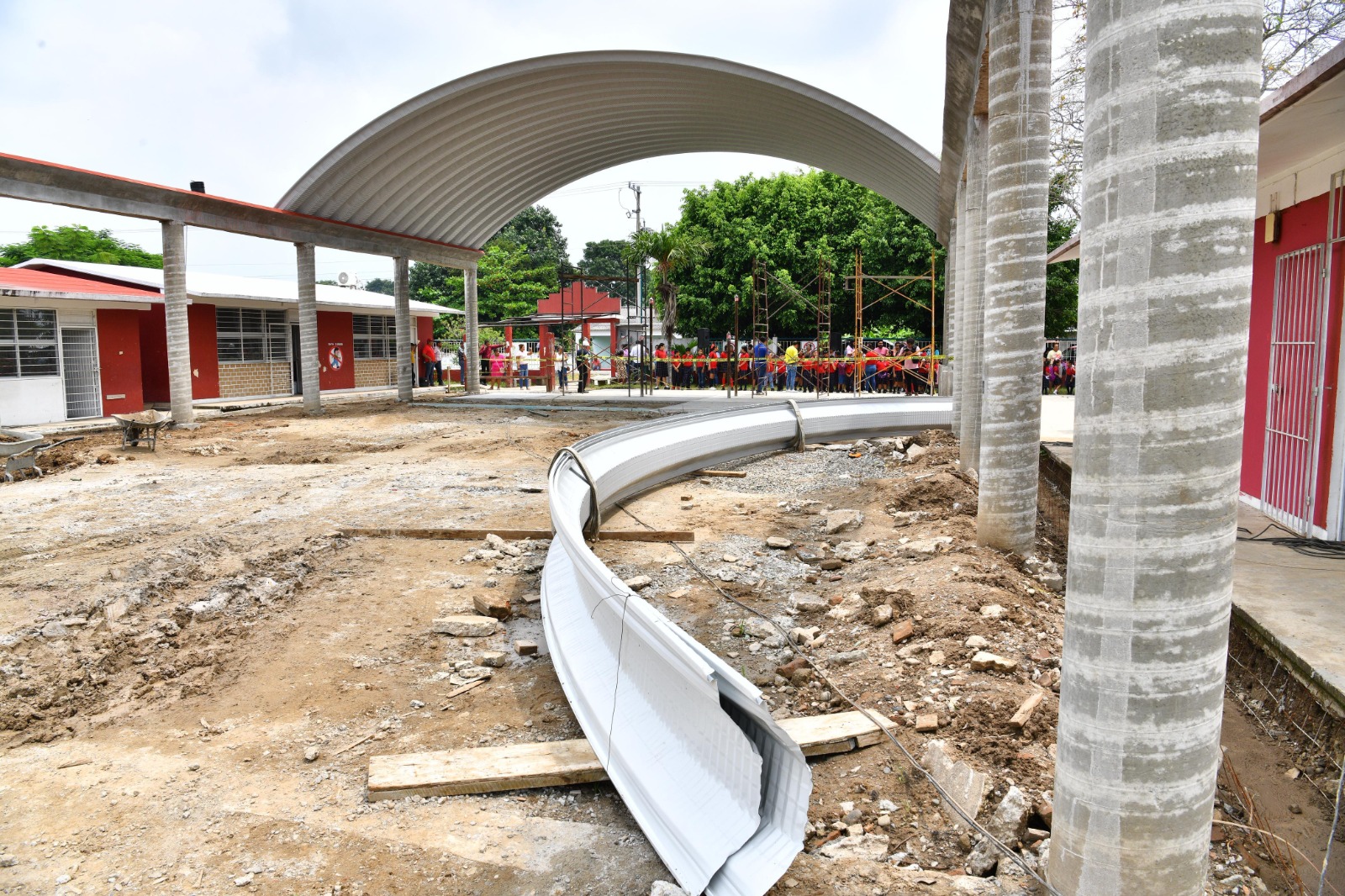 Ante la comunidad estudiantil, May Rodríguez agregó que, en beneficio de los educandos, la obra, que presenta un avance del 52% y se estima concluir en un tiempo de 30 días, contemplará también la edificación de los baños y el próximo año, se prevé lleguen los recursos del programa de “La Escuela es Nuestra”, que serán administrados por los padres de familia, los que, junto con sus maestros, priorizarán las necesidades que presenta el plantel.