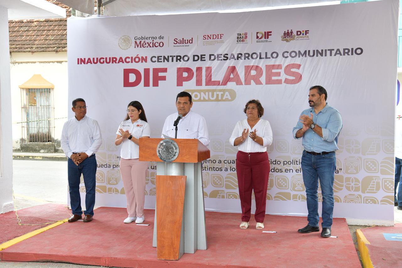El Gobernador Javier May Rodríguez inauguró en Jonuta el cuarto Centro de Desarrollo Comunitario DIF Pilares del estado, con lo que el Gobierno del Pueblo cumple con su compromiso de promover los derechos de todas y todos los tabasqueños, especialmente de los sectores de la población más vulnerables, así como de fomentar la unidad comunitaria y fortalecer los lazos familiares.