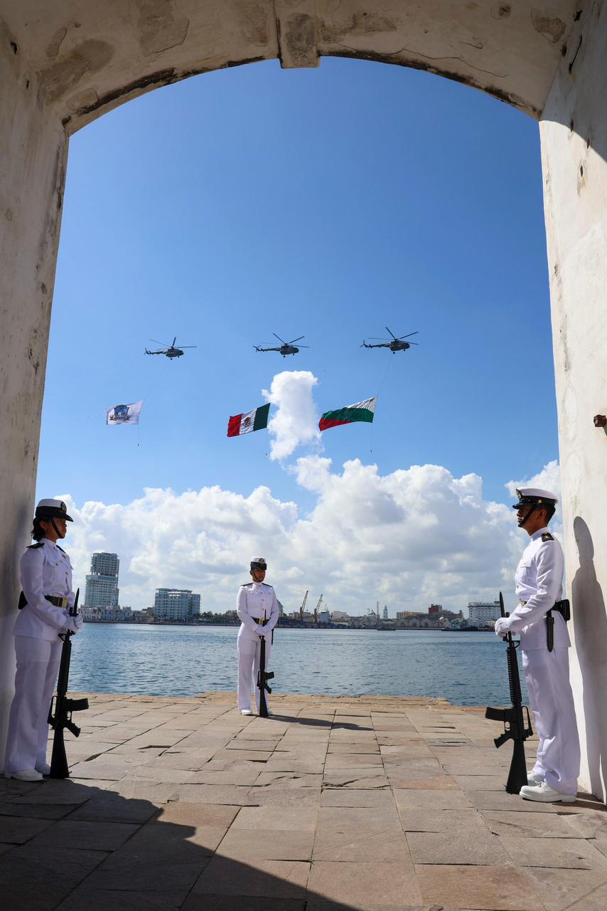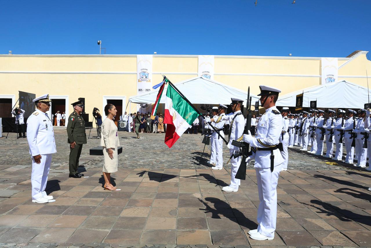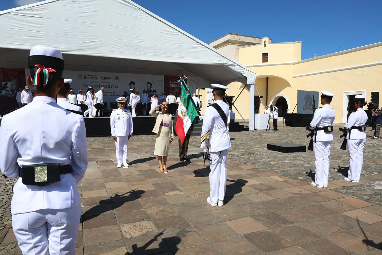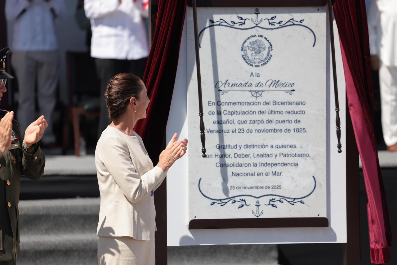 Como parte de la ceremonia, la Jefa del Poder Ejecutivo realizó la cancelación del Timbre Postal conmemorativo a los 200 años de la Independencia en la Mar, develó la placa conmemorativa y entregó condecoraciones al Mérito Bicentenario y Menciones Honoríficas a cadetes y personal de la Secretaría de Marina. Previo al evento, y a 170 años de la expedición de la Ley Juárez, inauguró el Museo Casa Benito Juárez, donde el Benemérito de las Américas vivió en Veracruz con su gabinete.