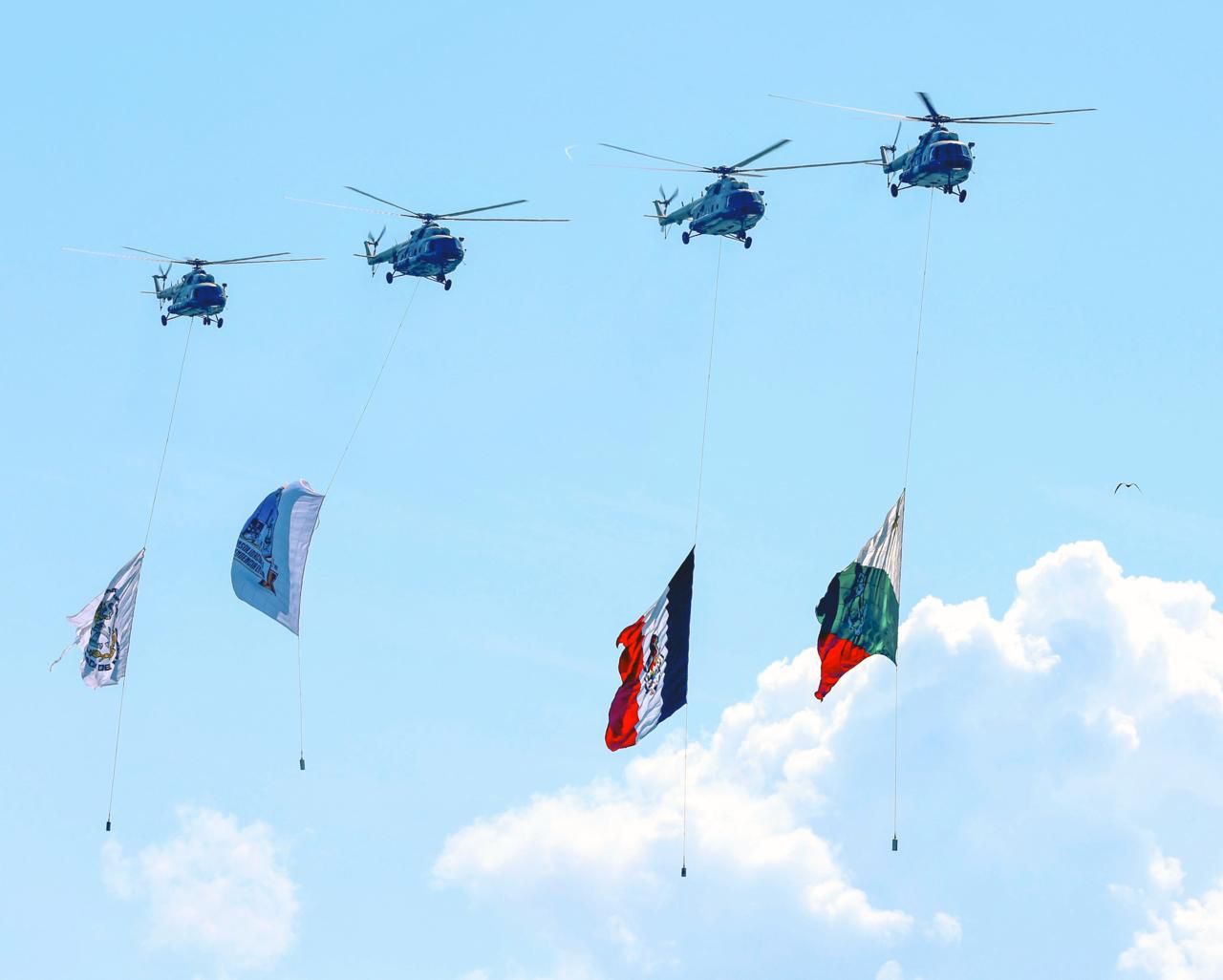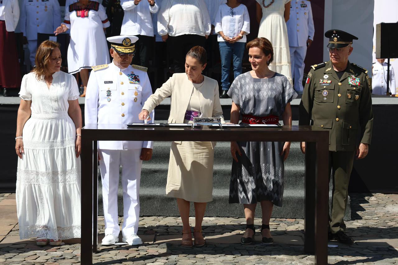 Asimismo, reconoció la valentía y vocación de las Fuerzas Armadas de México que construyen paz todos los días y están presentes desde la inauguración de un tren, hasta en casos de emergencia para tender la mano a las y los mexicanos, como ocurrió recientemente con las inundaciones en los estados de Veracruz, Puebla, Hidalgo, San Luis Potosí y Querétaro.