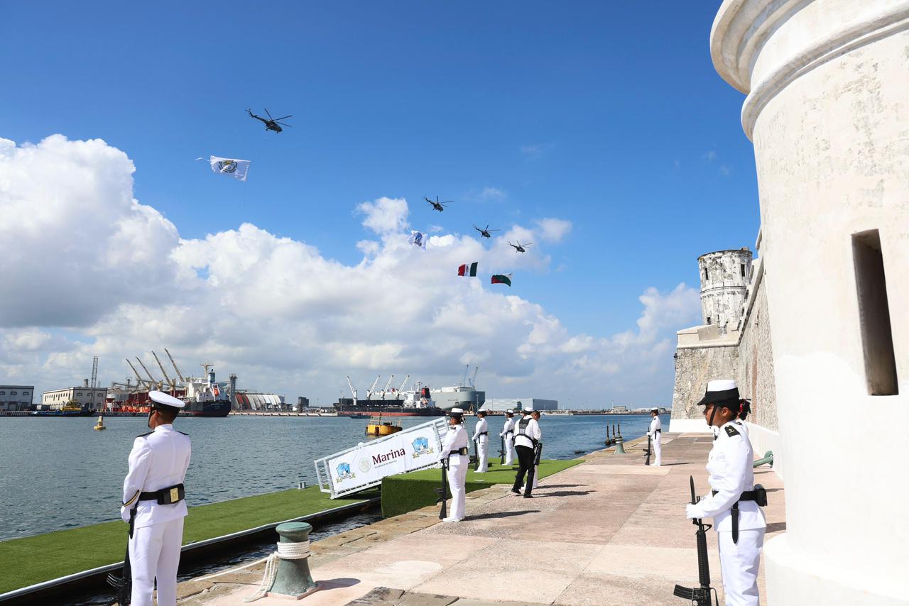 Por ello dijo que, en un día histórico como hoy, en los que se conmemoran 200 años de la Independencia en la Mar, también se celebra a la Armada de México: su entrega diaria, su disciplina, su valentía y su vocación de paz, que honran la memoria de Pedro Sáinz de Baranda, así como de héroes y heroínas que actualmente hacen posible la libertad.