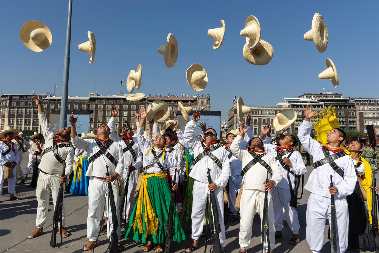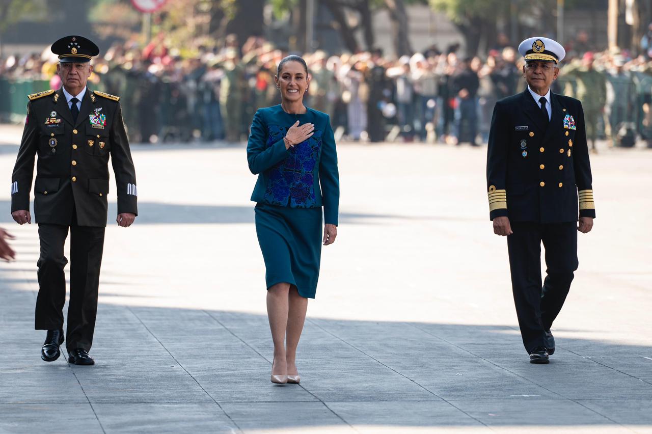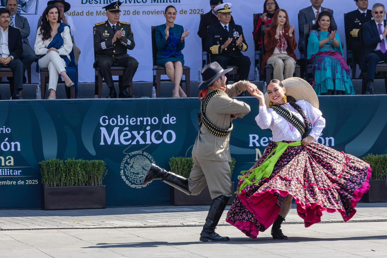 La Jefa del Ejecutivo Federal, acompañada por los secretarios de la Defensa Nacional, general Ricardo Trevilla Trejo, y de Marina, el almirante Raymundo Pedro Morales Ángeles, realizó el izamiento de la bandera monumental, asimismo pasó revista a las tropas. Como parte de la conmemoración, la Presidenta presenció la declamación “Lealtad: Ayer y Hoy” a cargo de dos cadetes del Heroico Colegio Militar, la escenificación de la Revolución Mexicana a cargo de mil 910 integrantes del Ejército, Fuerza Aérea y Guardia Nacional, así como de un popurrí de bailables revolucionarios por parte del Mariachi de la Secretaría de Defensa Nacional.