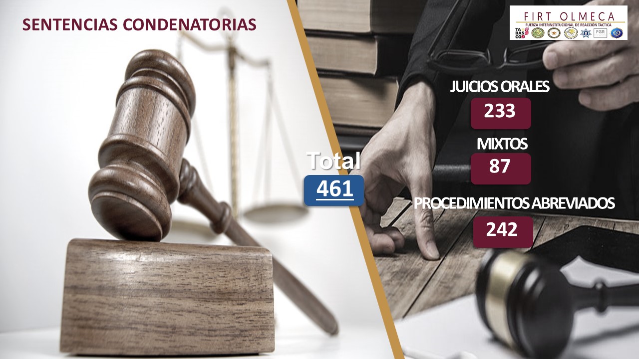 De igual manera se registró un aumento del 375 por ciento en vinculaciones a proceso, del 224 por ciento en la obtención de sentencias condenatorias y del 226 por ciento en ejecución cateos.