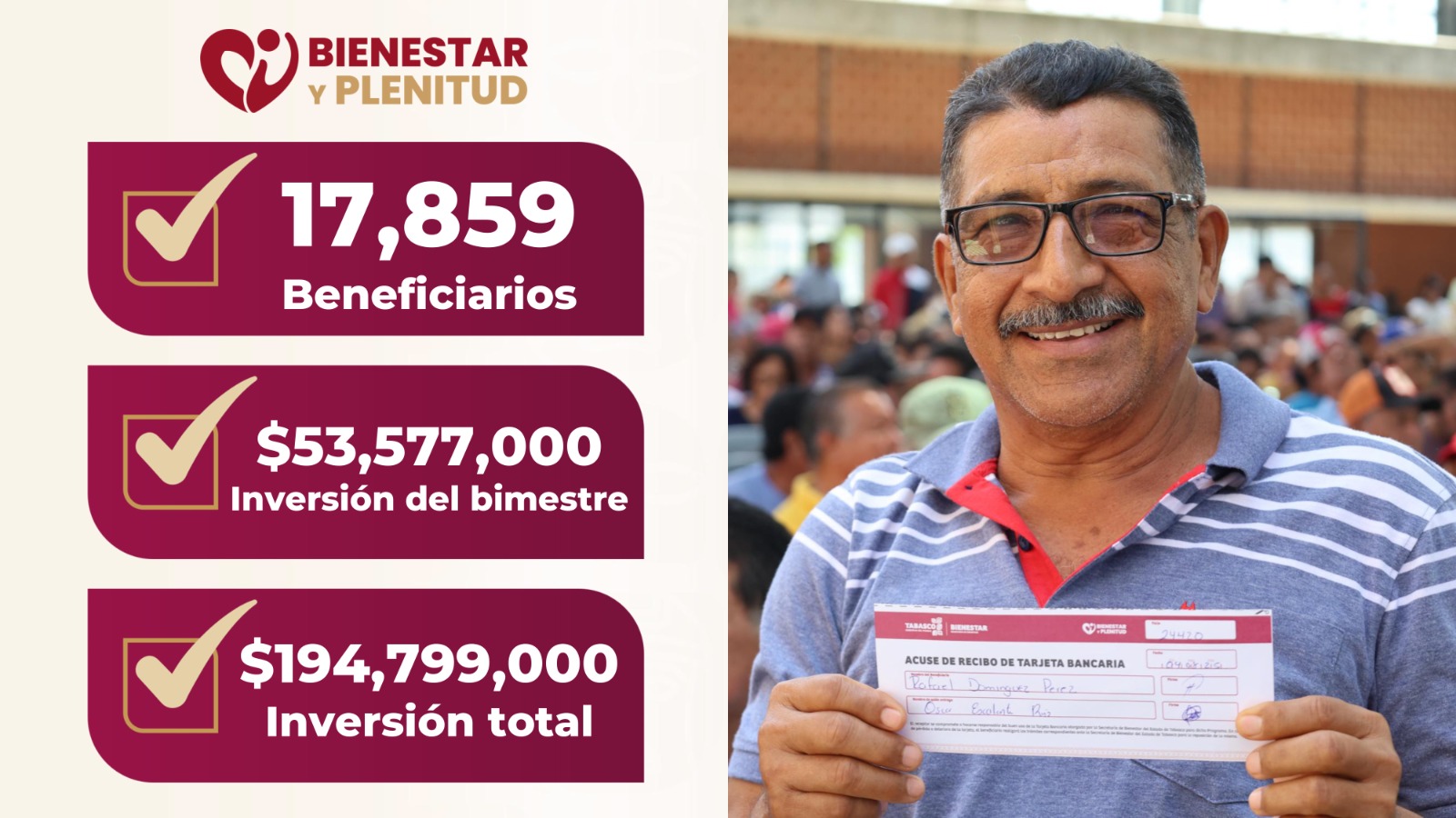 También puntualizó que este lunes inicia el pago de la pensión a hombres de 63 y 64 años, quienes forman parte del programa ‘Bienestar y Plenitud’, sumando en este bimestre 17 mil 859 beneficiados, con una inversión de 53 millones de pesos. Agregó que en lo que va del año, ya son más de 194 millones derramados en toda la entidad con esta estrategia.