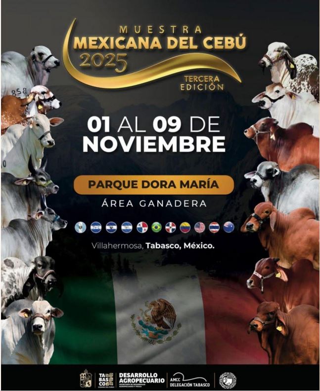 Finalmente, invitó a la Muestra Mexicana del Cebú, que inicia el próximo sábado 1 de noviembre en el Parque Tabasco “Dora María”, donde se exhibirá lo mejor de la ganadería nacional, y que tendrá la participación de representantes de Guatemala, Nicaragua, Honduras, República Dominicana, Colombia y Estados Unidos.
