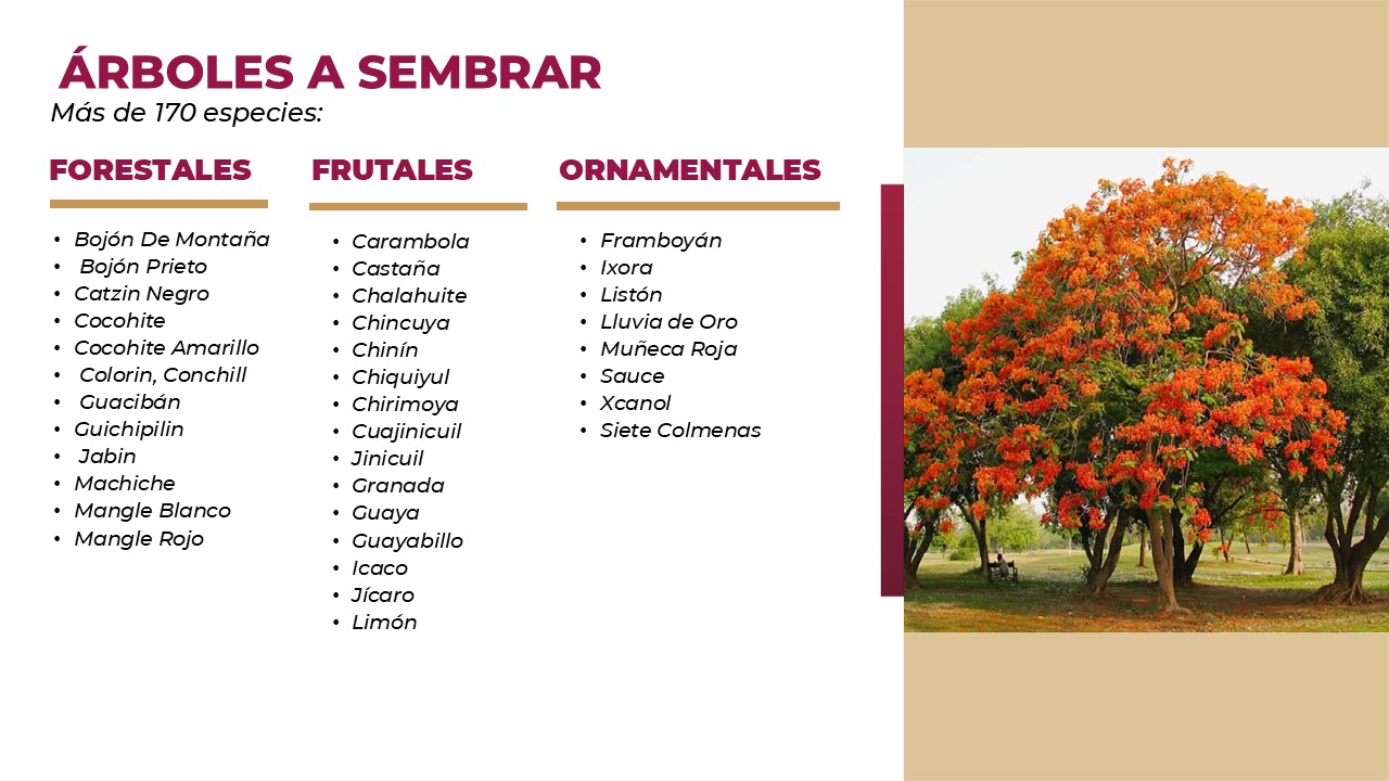 Precisó que los puntos viables para la siembra de árboles son las Áreas Naturales Protegidas (ANP); parques urbanos y rurales; escuelas públicas y privadas de todos los niveles; zonas dañadas o degradadas, donde la tierra ha perdido árboles; y ecosistemas valiosos como manglares y selvas, que ayudan a regular el agua y proteger la biodiversidad.