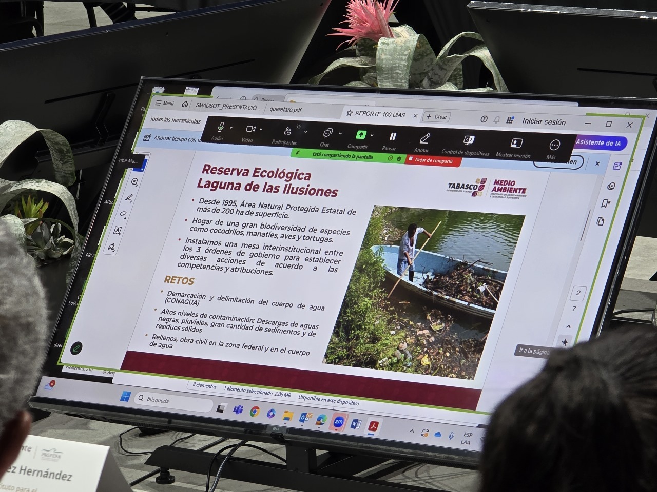 El Gobierno del Pueblo trabaja intensamente para atender los retos que enfrenta Tabasco para salvaguardar nuestro entorno natural y garantizar un futuro sostenible para todos, señaló la secretaria del Medio Ambiente y Desarrollo Sostenibles (SEMADES) en la entidad, Sheila Cadena Nieto, al participar en la Primera Reunión Nacional para la Protección y Justicia Ambiental, convocada por la Procuraduría Federal de Protección al Ambiente (Profepa) en la Ciudad de México.