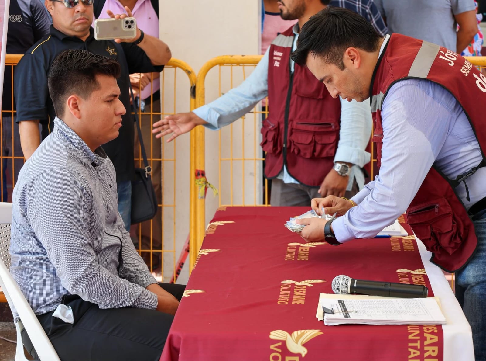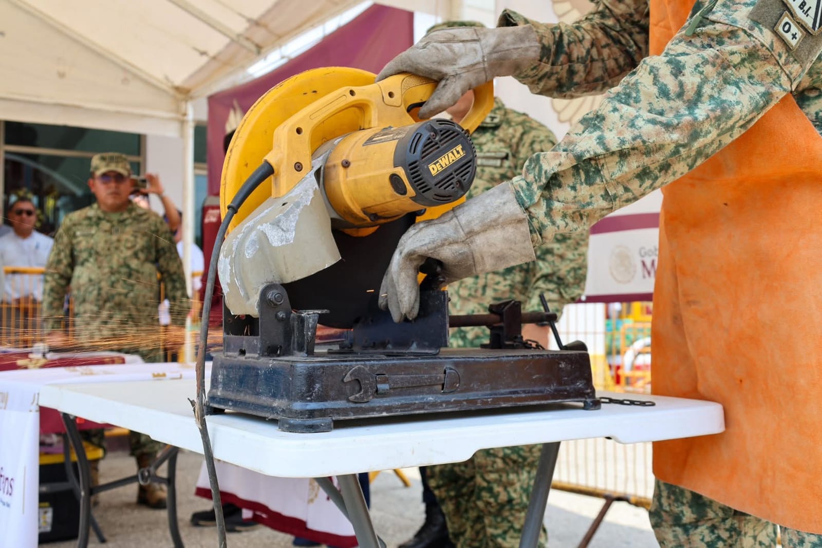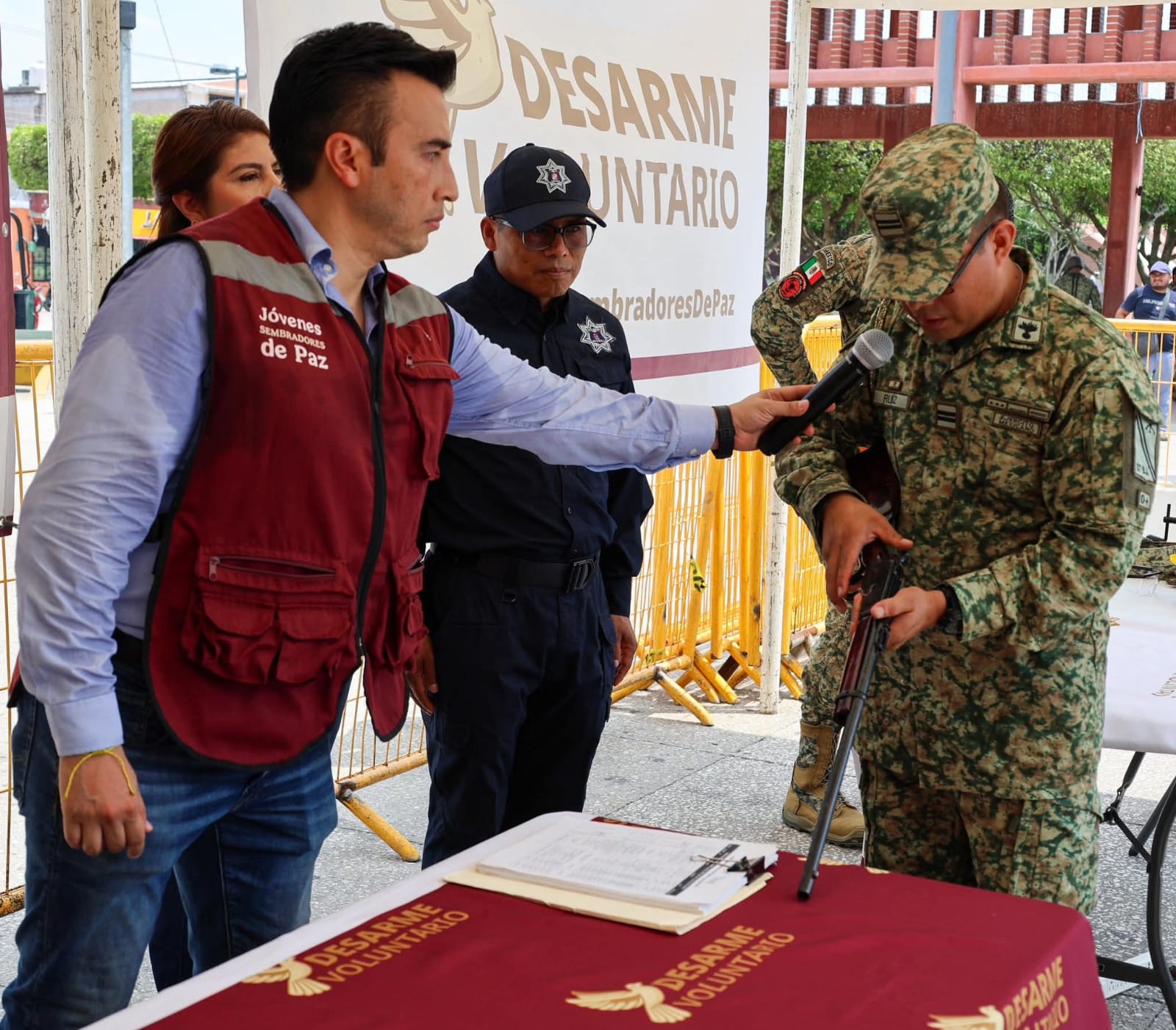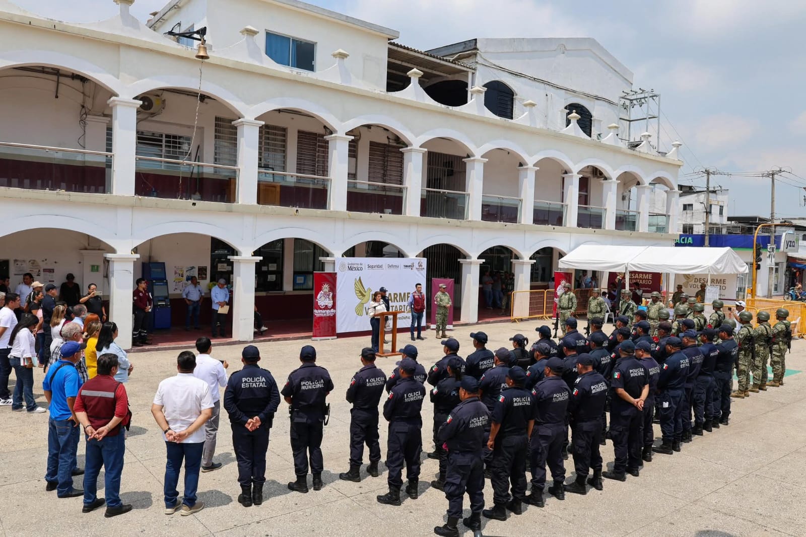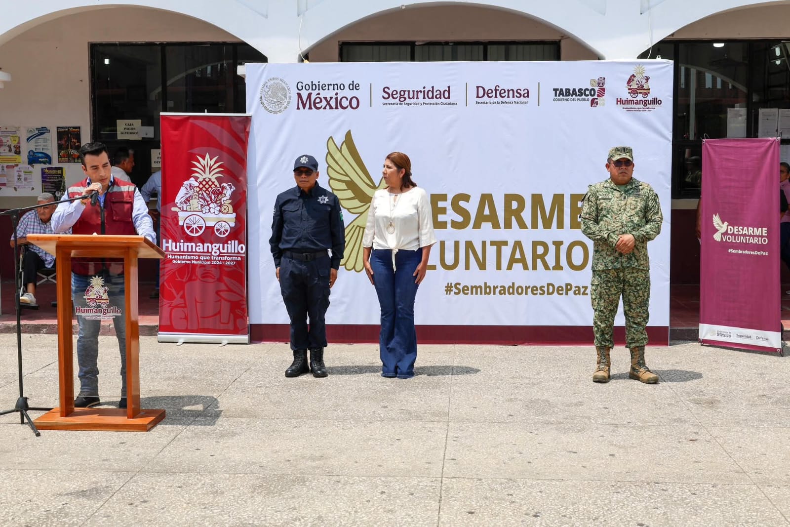 Este miércoles la presidenta municipal, Mari Luz Velázquez Jiménez, encabezó, junto al autoridades civiles y militares, el arranque del Programa de Desarme Voluntario de Armas, con el objetivo de reducir riesgos en los hogares y fomentar entornos más seguros para todas las familias huimanguillenses.