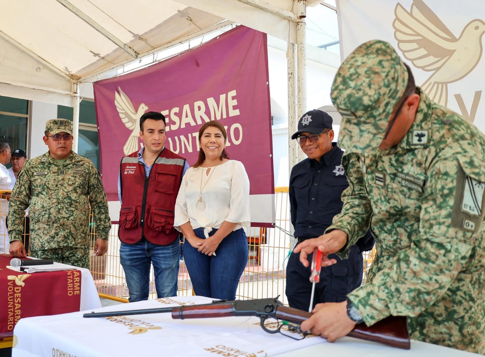 Alcaldesa de Huimanguillo encabeza junto con autoridades civiles y militares, el programa Desarme Voluntario de Armas.