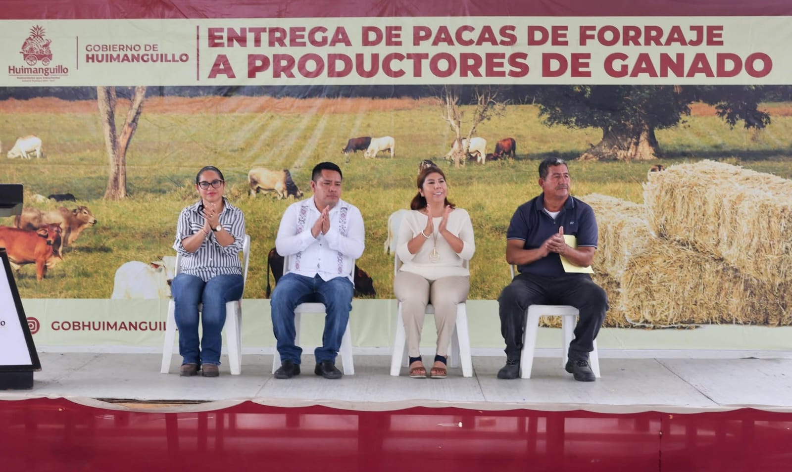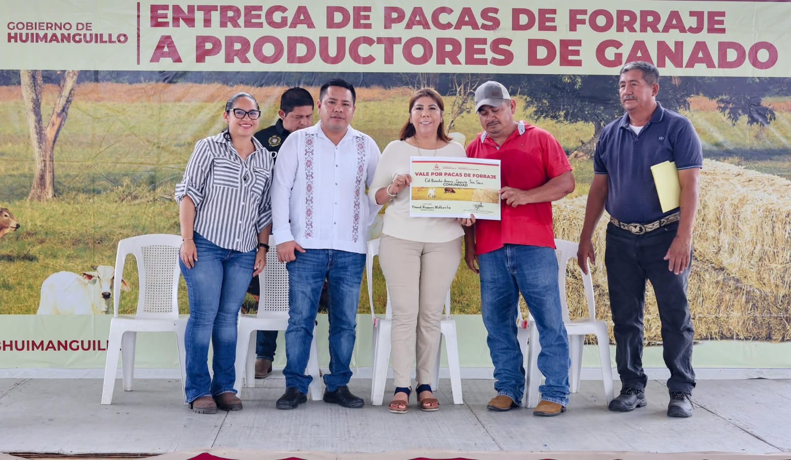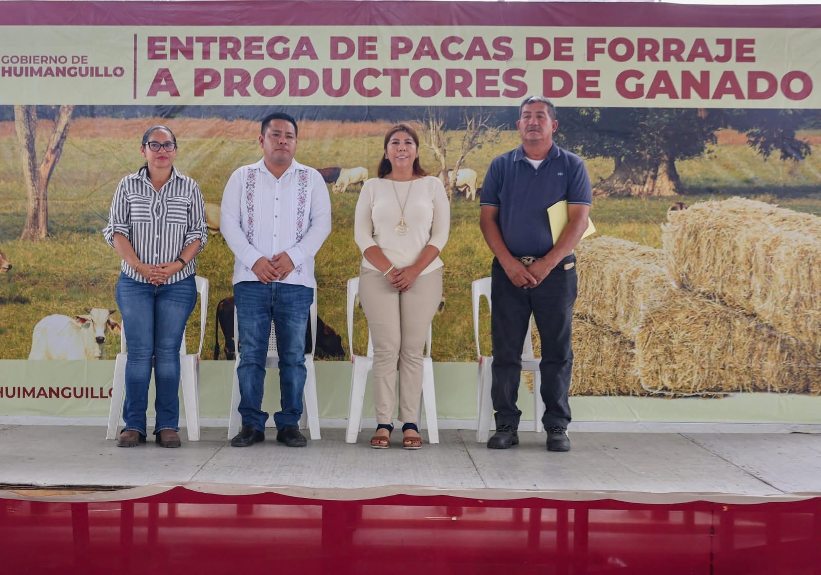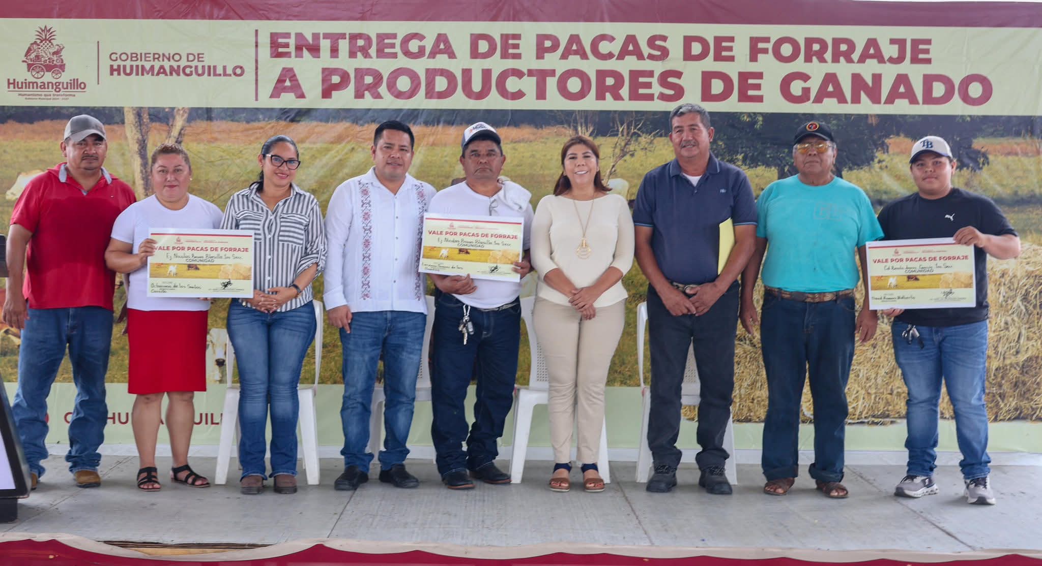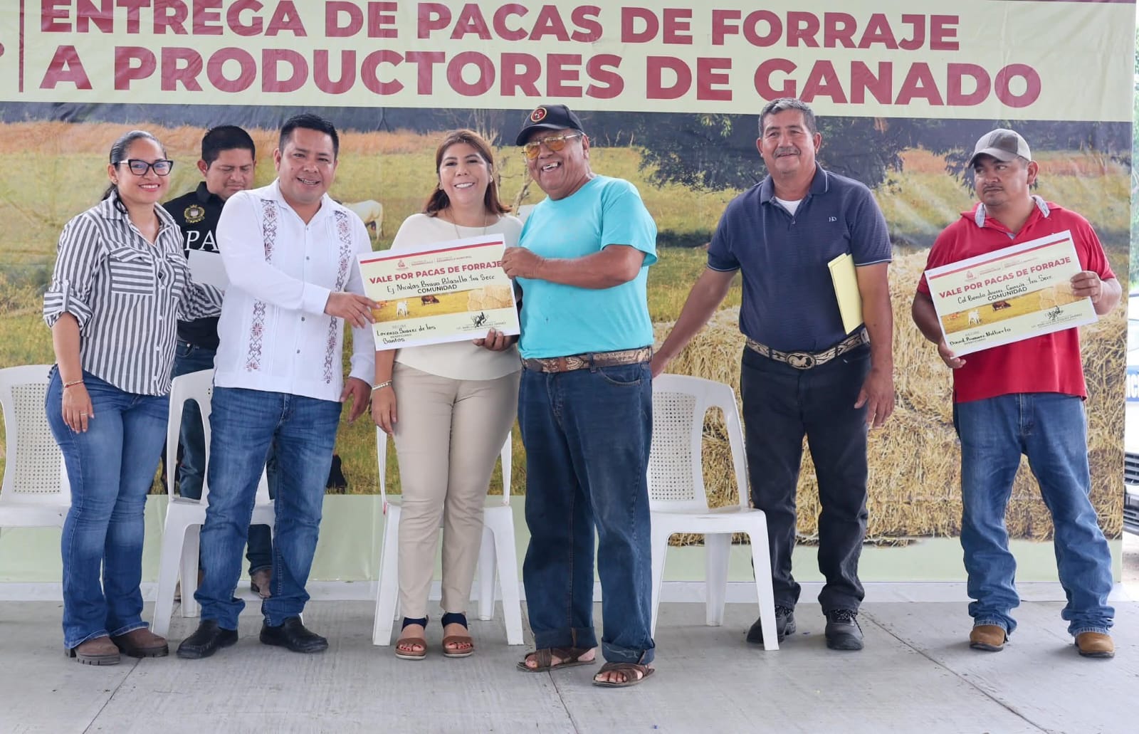 Refrendando el compromiso de su gobierno con quienes sostienen el motor productivo de Huimanguillo, la presidenta municipal Mari Luz Velázquez Jiménez encabezó la entrega de 3,500 pacas de forraje a 100 productores ganaderos en Blasillo 1ra. Sección (Ejido Nicolás Bravo).
