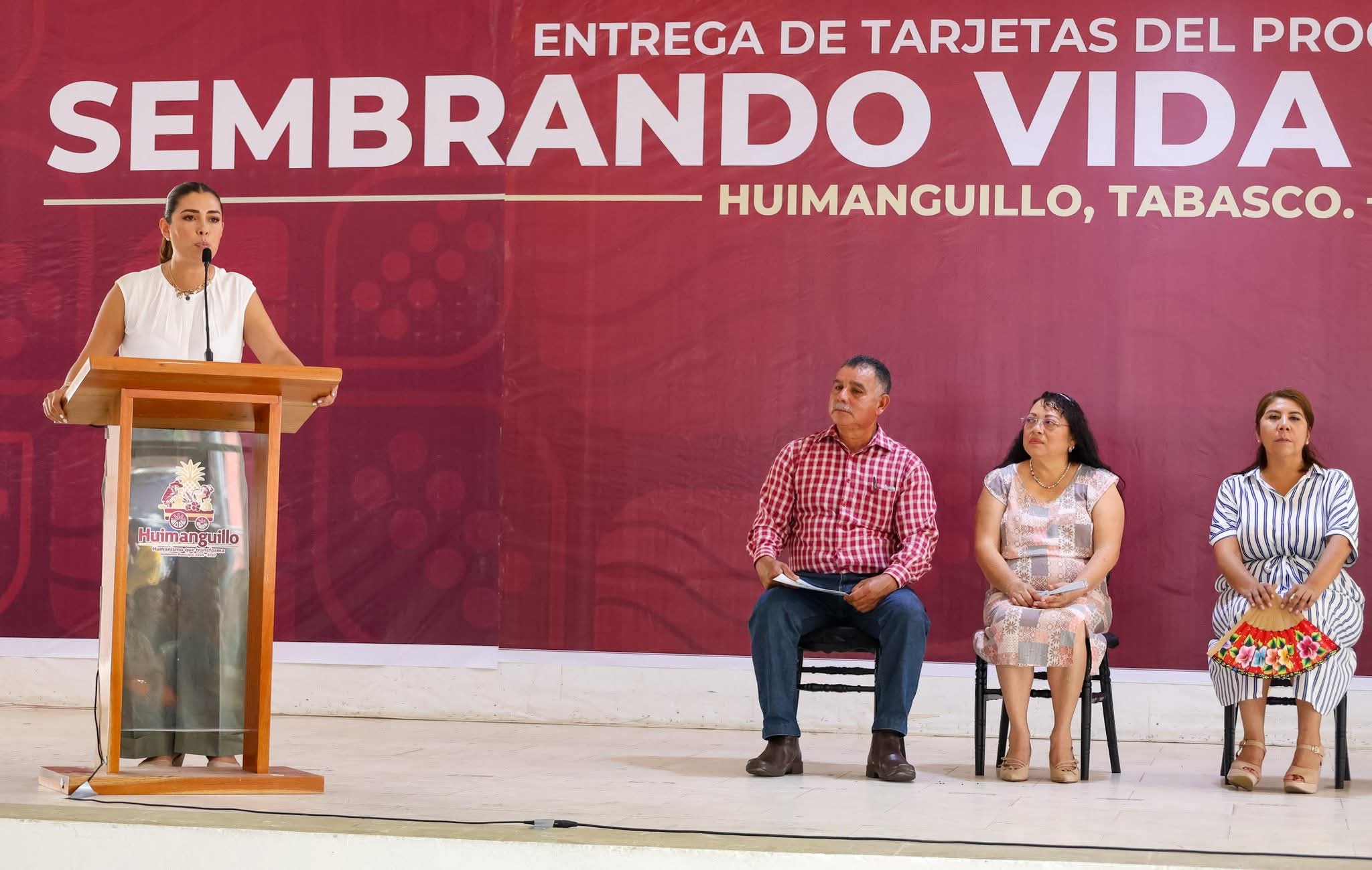 En su mensaje, la alcaldesa agradeció al gobernador Javier May Rodríguez por su permanente solidaridad y cercanía con el pueblo de Huimanguillo, y reconoció a la secretaria de Bienestar por encabezar con compromiso y sensibilidad este importante programa.