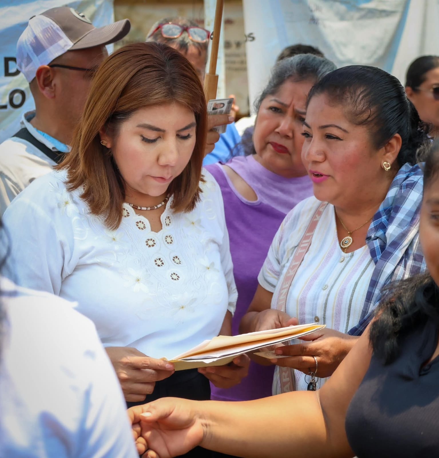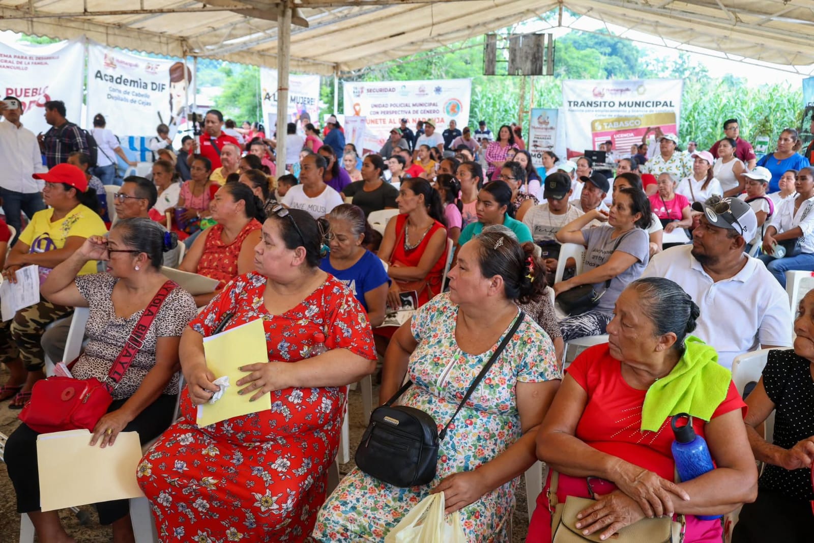 Alcaldesa Mari Luz Velázquez Jiménez encabeza una audiencia en territorio, en la Villa Flores 1ra sección de Huimanguillo.