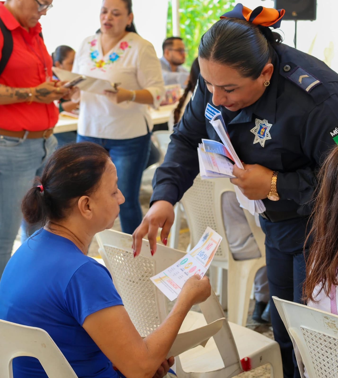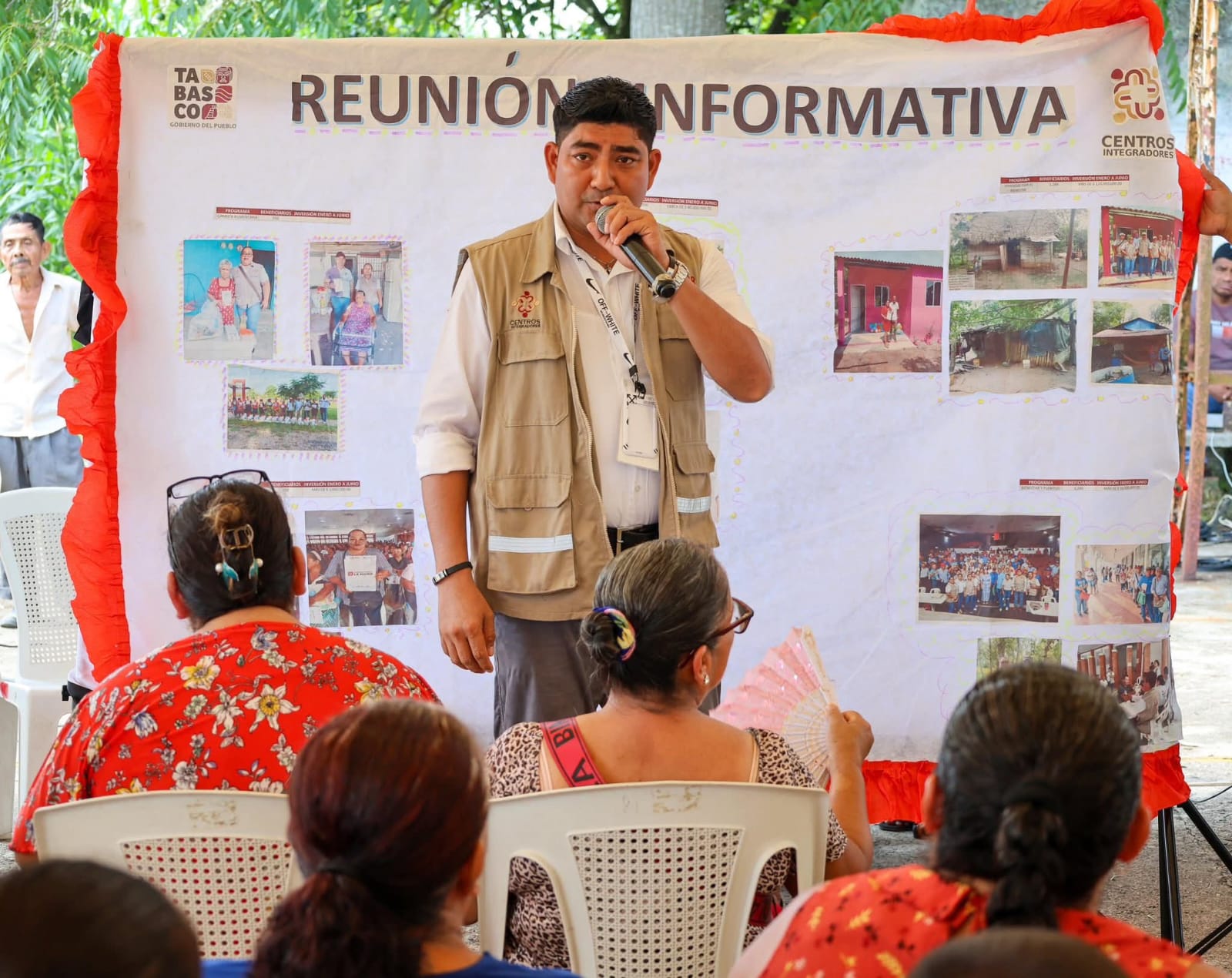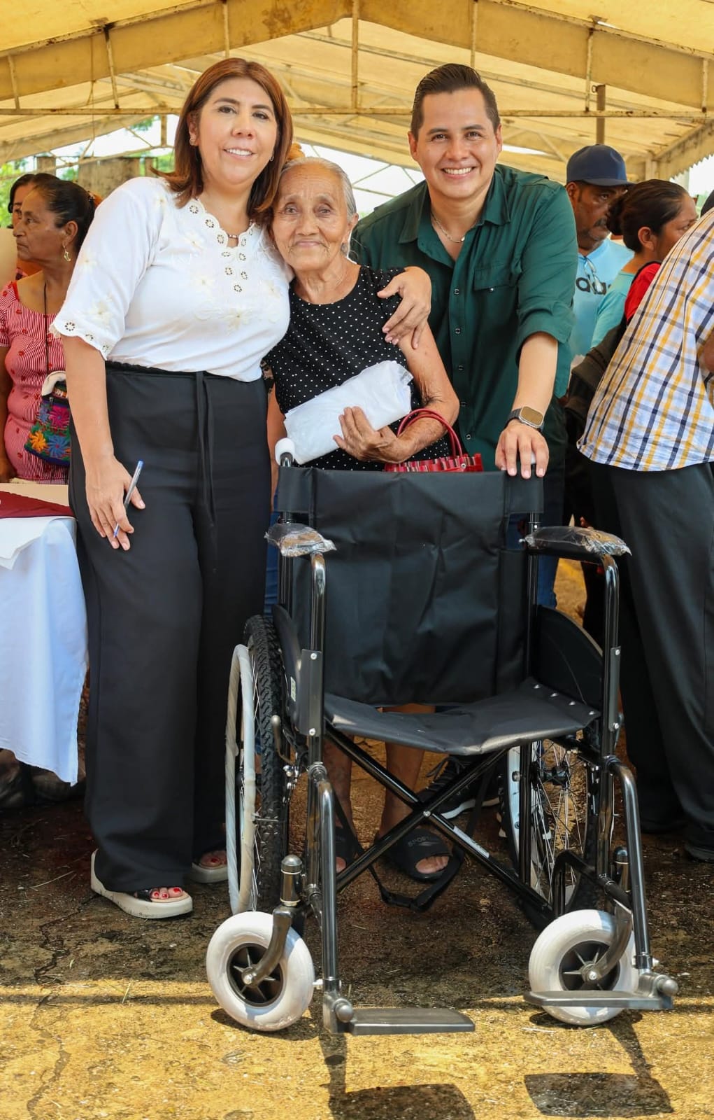 En Villa Flores 1ª Sección, la presidenta municipal Mari Luz Velázquez Jiménez encabezó una audiencia en territorio, donde escuchó a las familias y entregó apoyos como molinos, pescado gratuito, despensas, sillas de ruedas, bastones y andaderas.