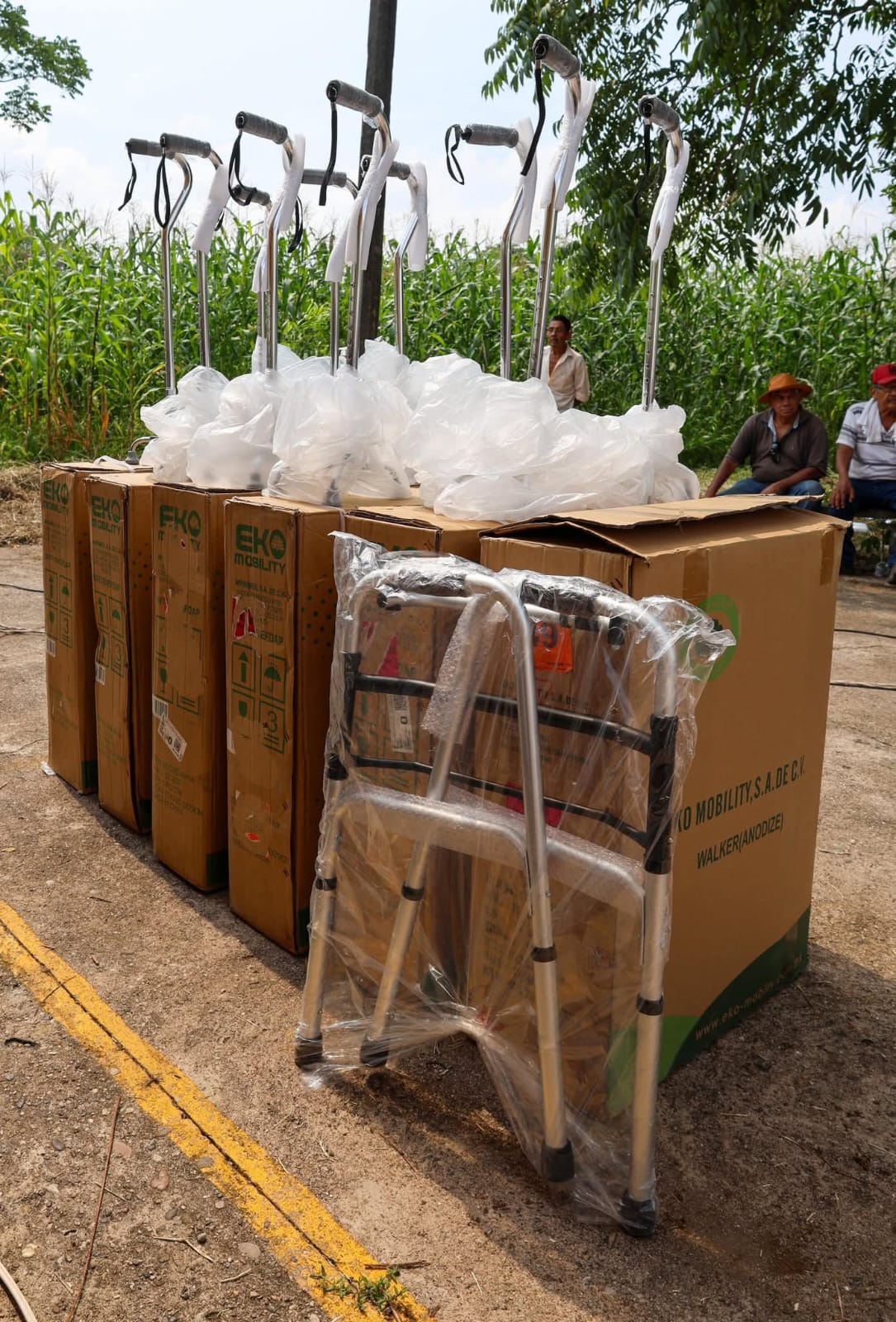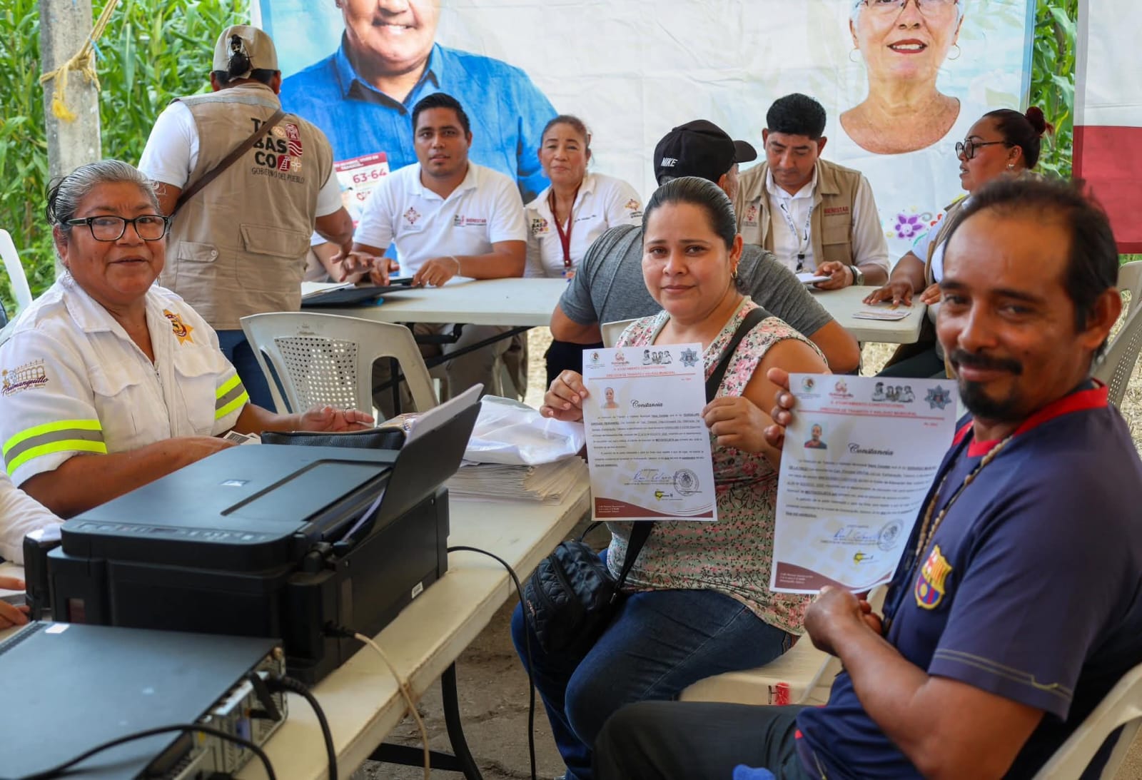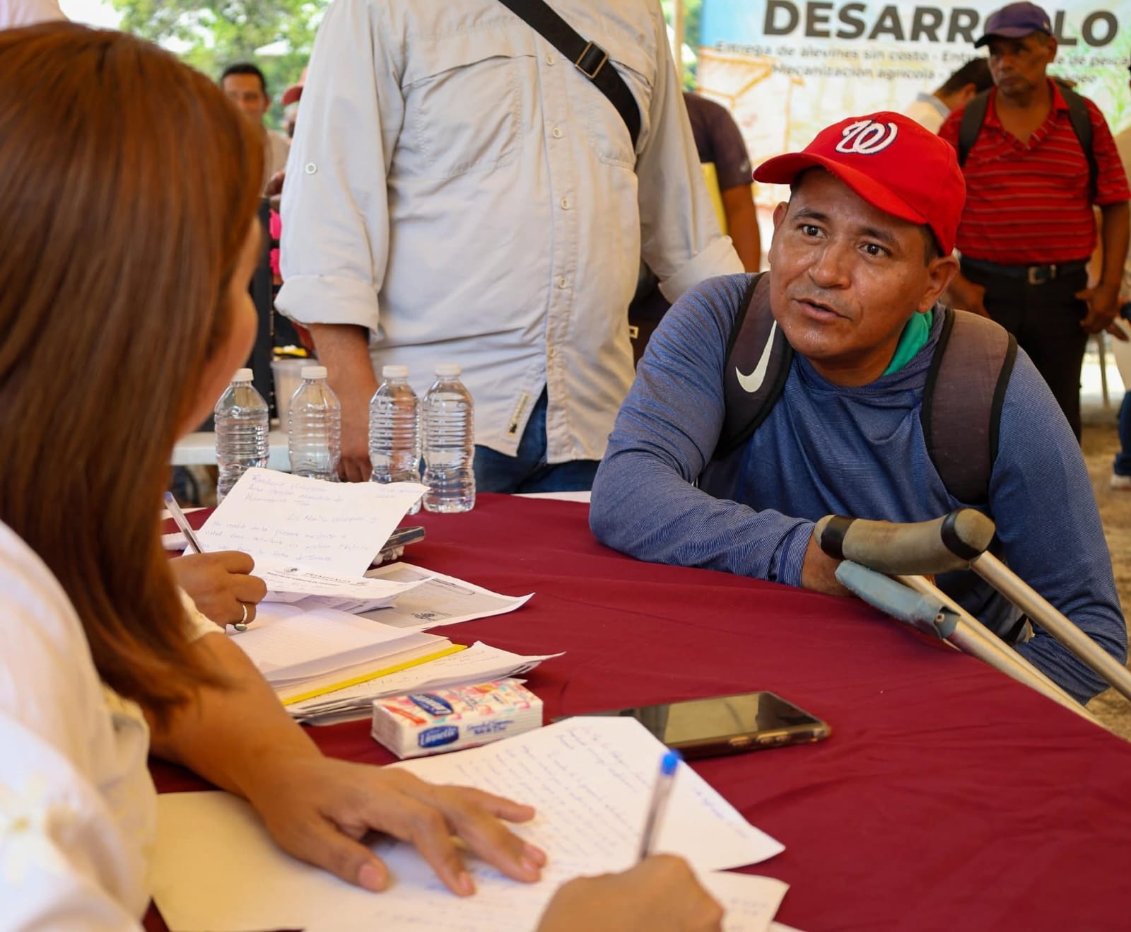 En Villa Flores 1ª Sección, la presidenta municipal Mari Luz Velázquez Jiménez encabezó una audiencia en territorio, donde escuchó a las familias y entregó apoyos como molinos, pescado gratuito, despensas, sillas de ruedas, bastones y andaderas.