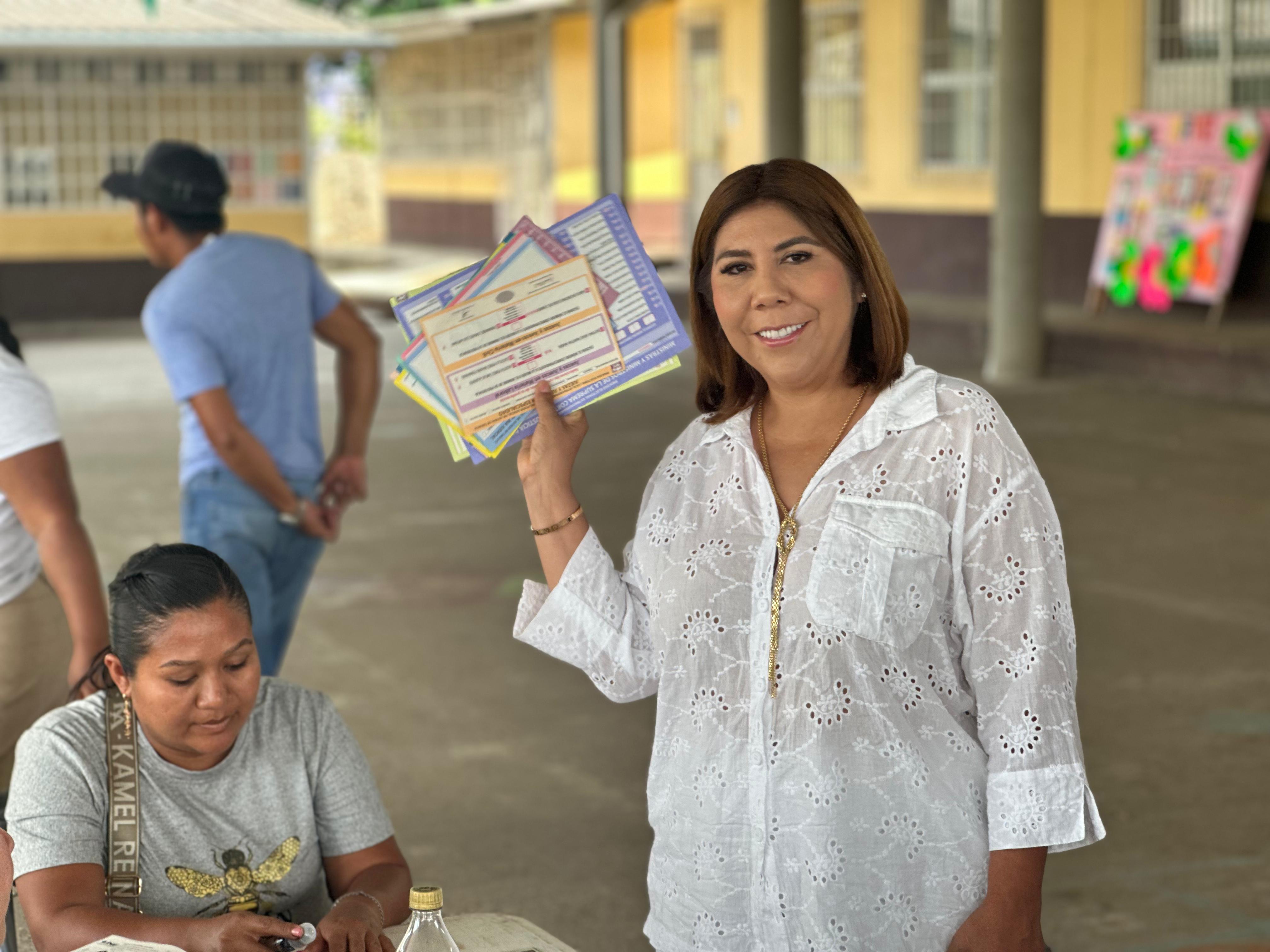 La edil acudió a la sección electoral 0736, en la casilla instalada en la escuela primaria Gral. Gregorio Méndez Magaña, ubicada en el poblado Mecatepec, donde emitió su sufragio con total responsabilidad cívica.