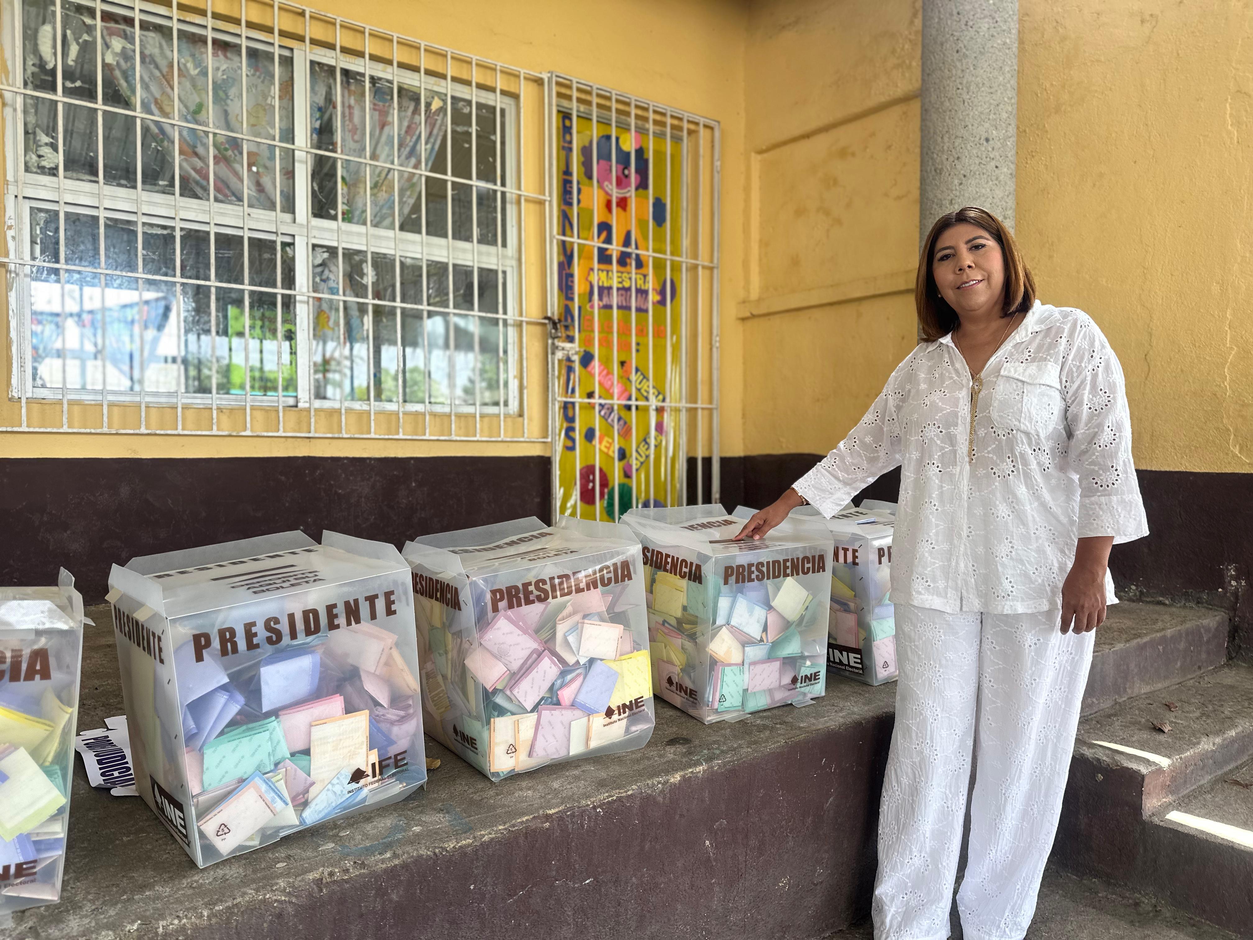 Este domingo, la presidenta municipal de Huimanguillo, Mari Luz Velázquez Jiménez, ejerció su derecho al voto en el marco de la inédita elección judicial celebrada en el país.