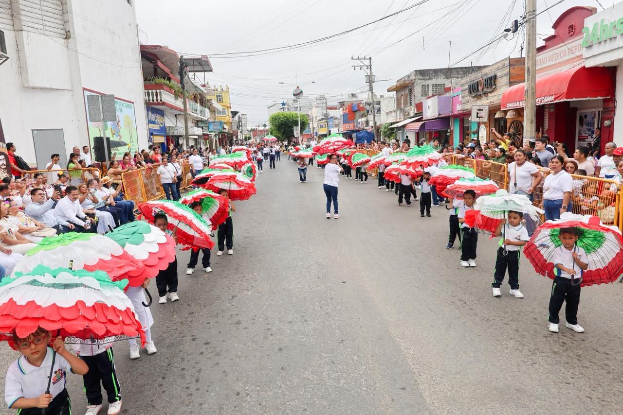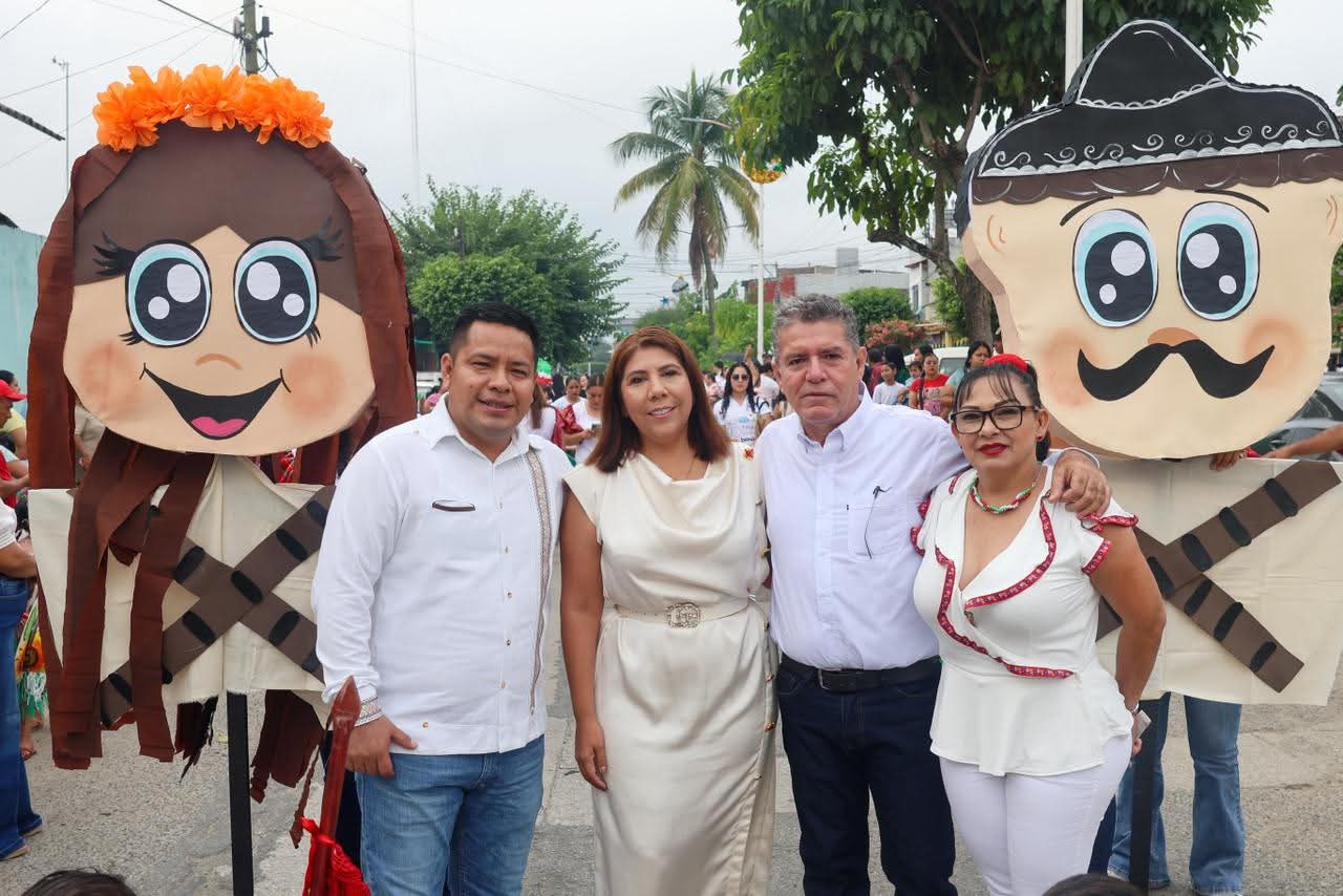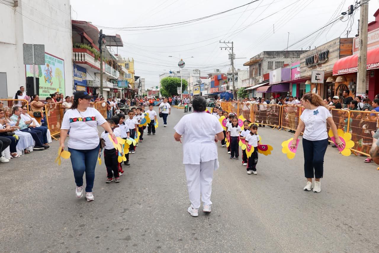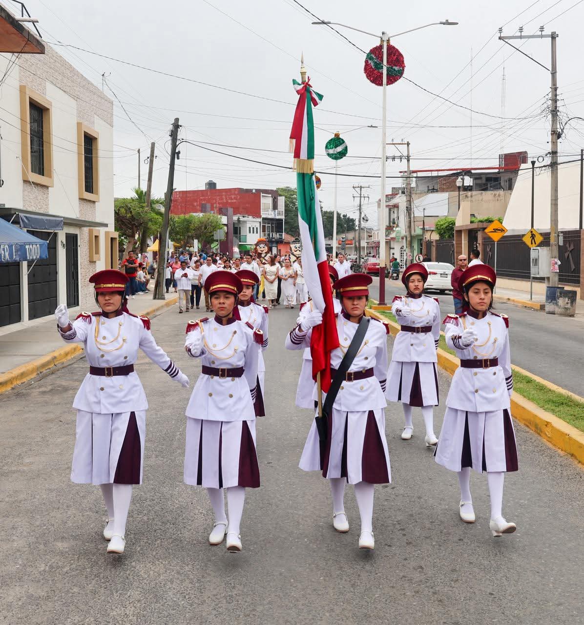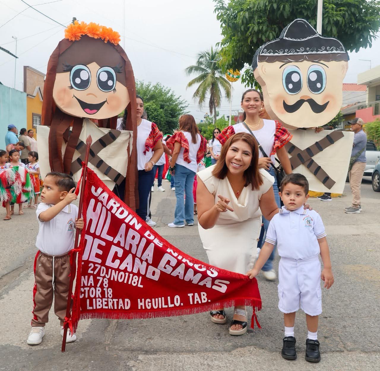La alcaldesa reconoció el compromiso del personal docente y de las familias, quienes contribuyen al fortalecimiento de la formación integral y la educación cívica de la niñez huimanguillense.