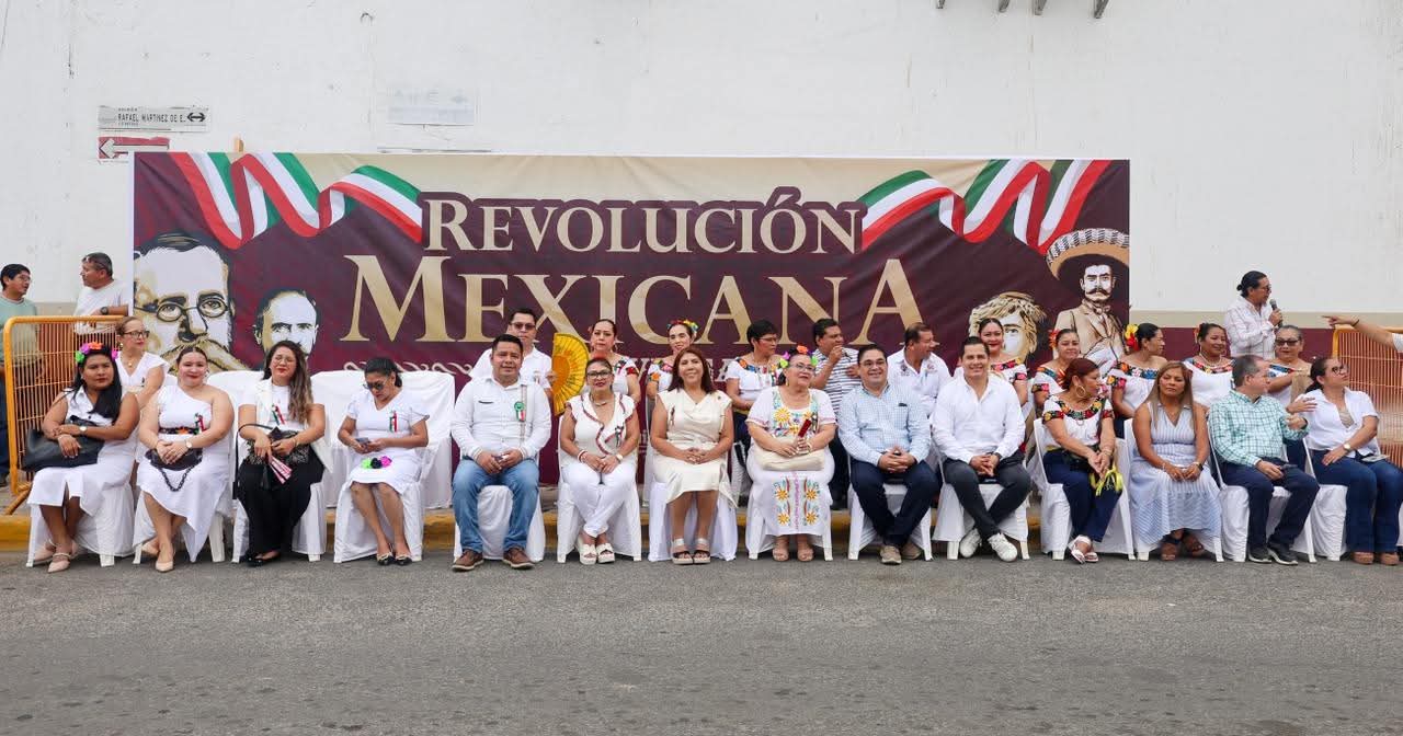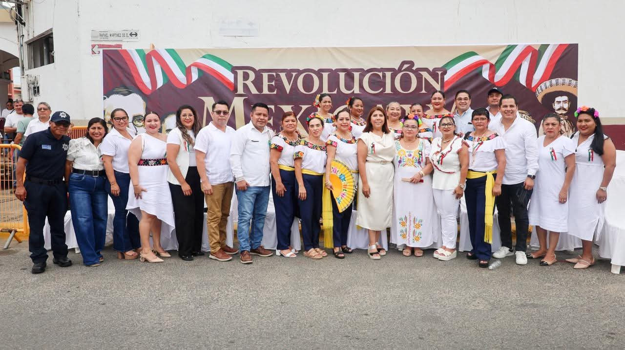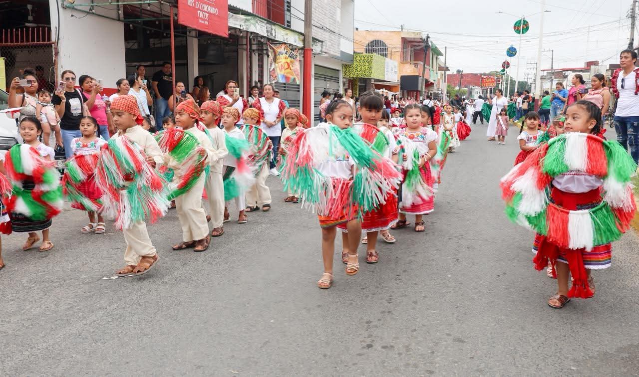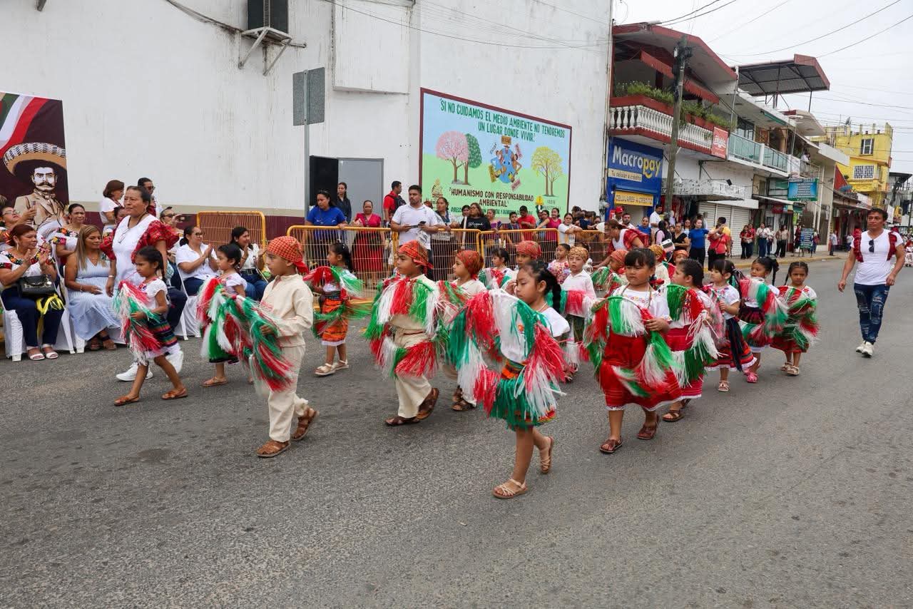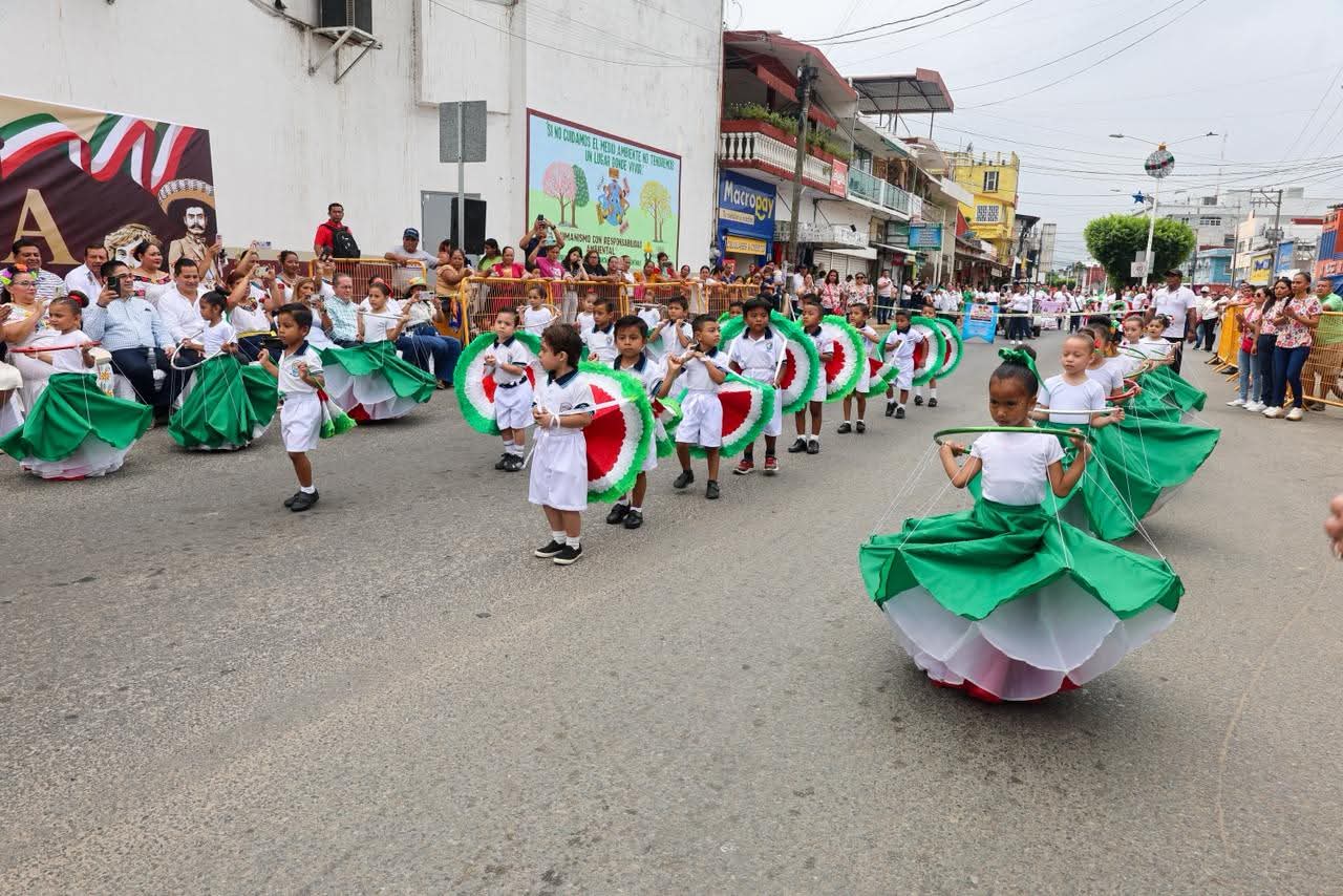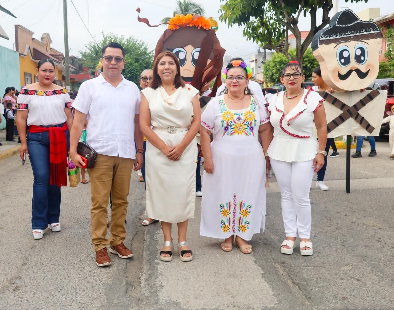 La presidenta municipal Mari Luz Velázquez Jiménez acompañó este miércoles el Desfile Cívico de nivel preescolar en conmemoración de la Revolución Mexicana.