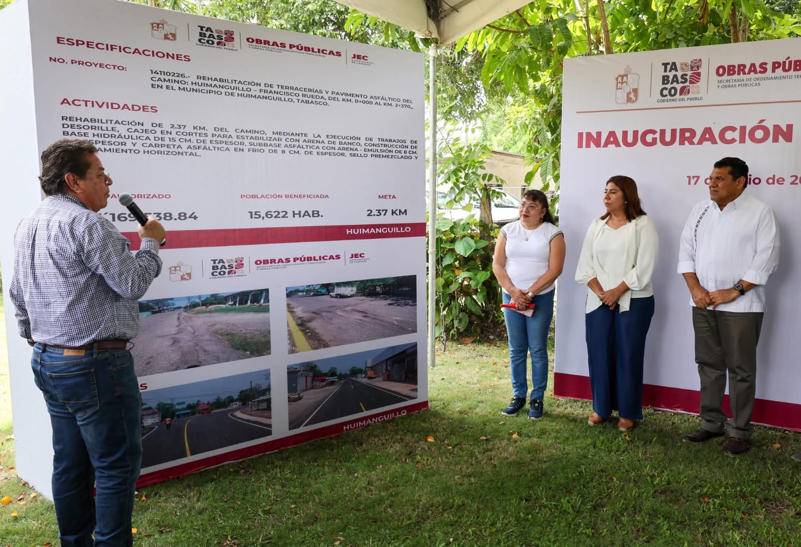 La alcaldesa Mari Luz Velázquez Jiménez, junto al gobernador Javier May Rodríguez, inauguraron la rehabilitación del camino Huimanguillo–Francisco Rueda.