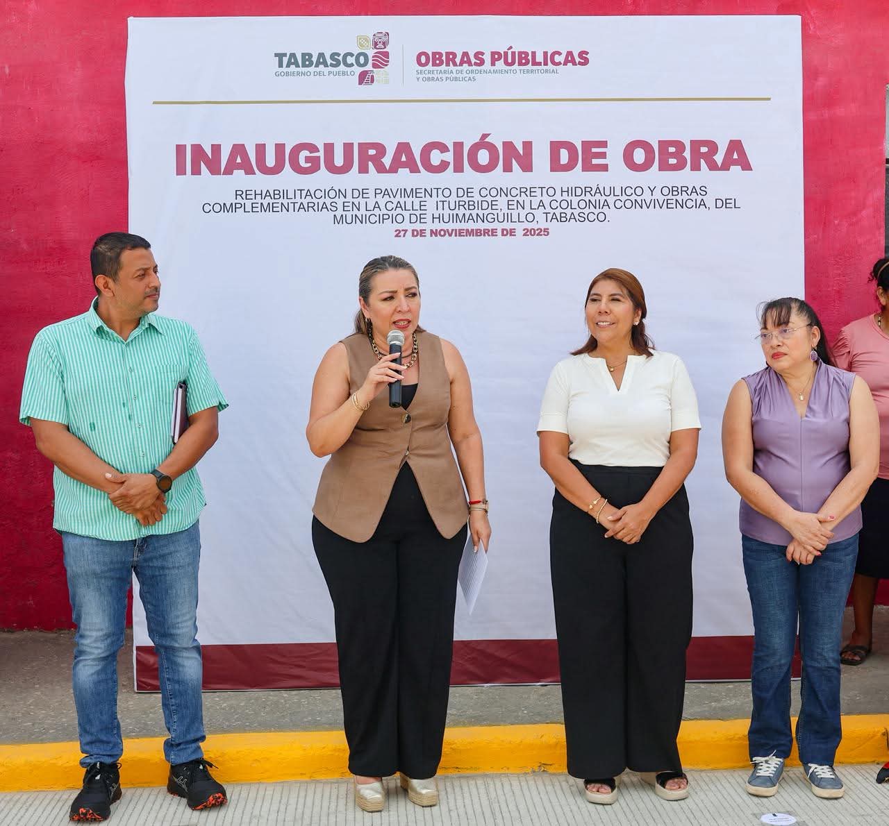 Gracias al esfuerzo coordinado entre el Gobierno del Estado y el Ayuntamiento de Huimanguillo, la presidenta municipal Mari Luz Velázquez Jiménez, acompañada por la secretaria de Cultura, Aida Castillo Santiago, inauguró la rehabilitación integral de la calle Iturbide, una obra que fortalece la movilidad y mejora la calidad de vida de las y los vecinos de las colonias Torito y Convivencia.